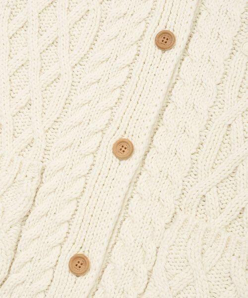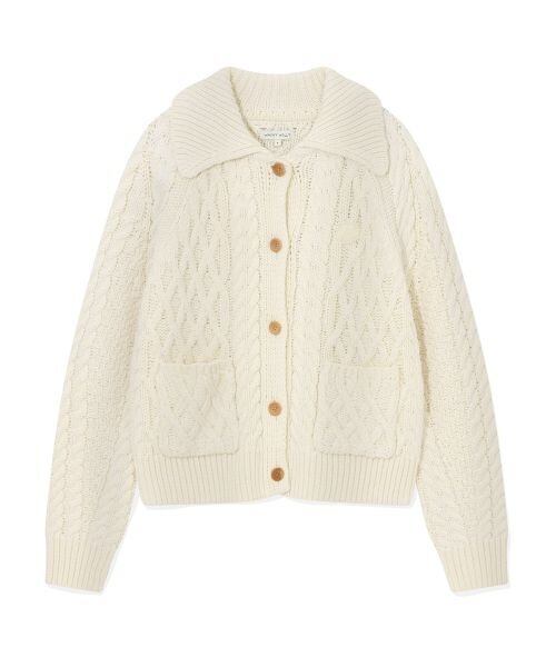 リリーのロゴをポイントにした、程よい厚みのケーブルニットカラーカーディガン。