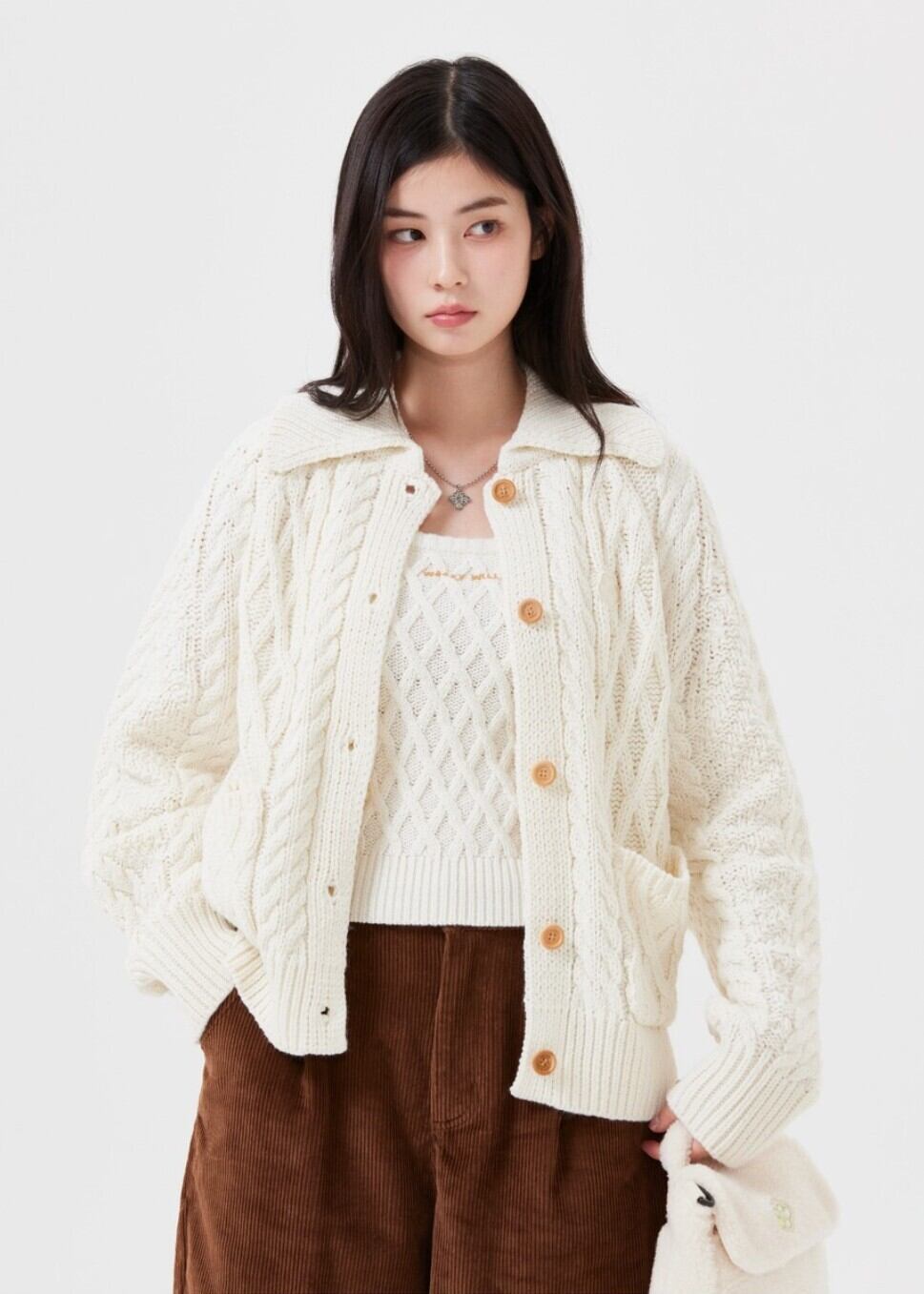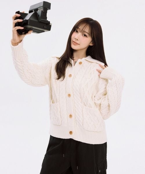 数量限定特典イベント!★aespa ジゼル 着用!!【WACKY WILLY】Women's Cable Cara Cardigan (2 colors)