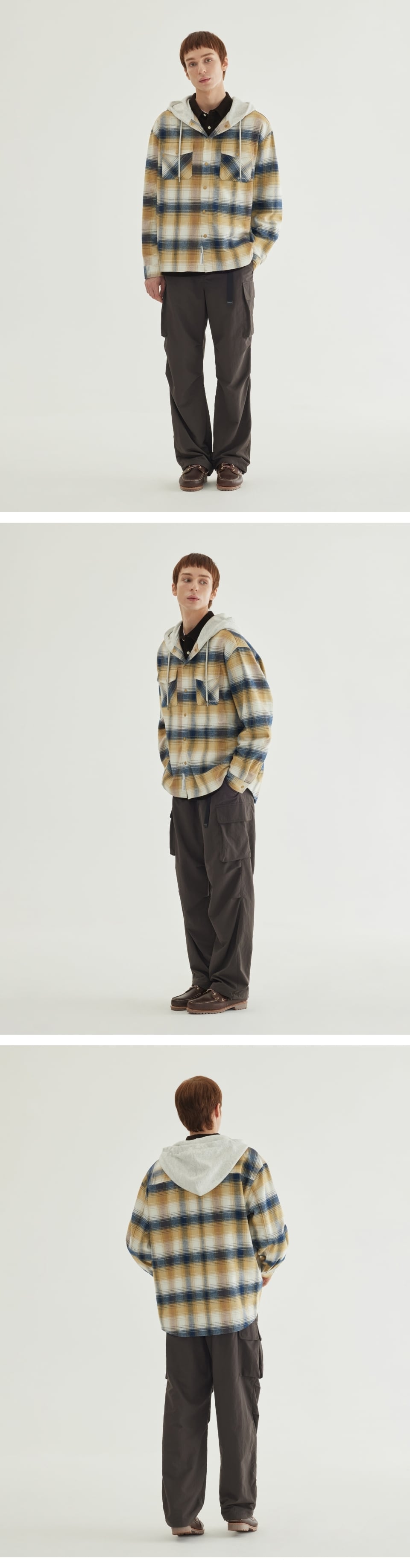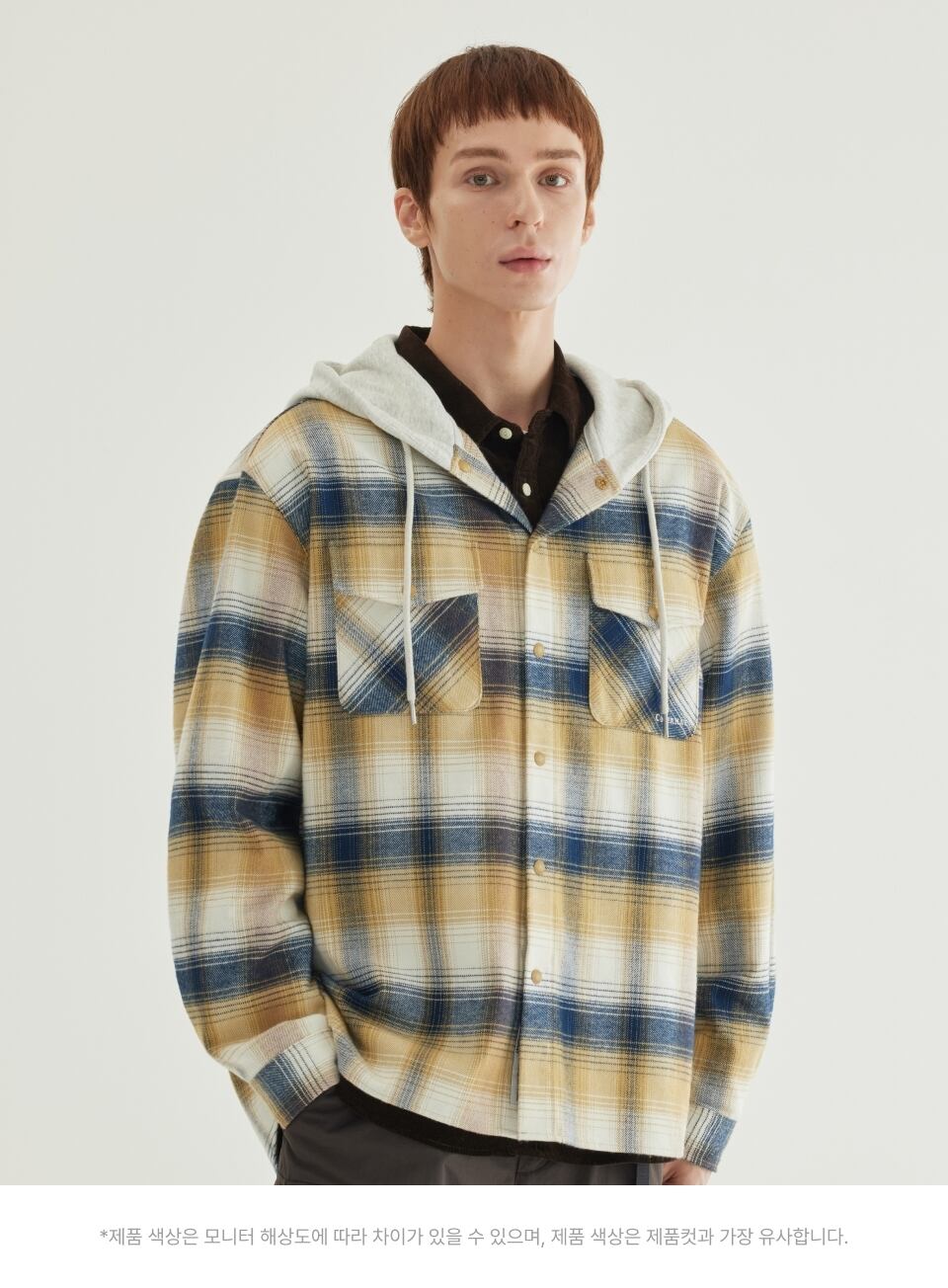 数量限定スビンインセンネッコ特典!★TXT スビン 着用!【COVERNAT】Oversized Fit Hoodie Checkered Shirt _ Dark Blue