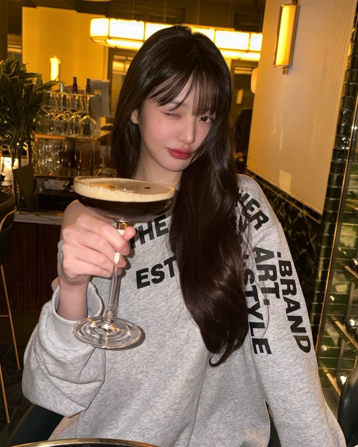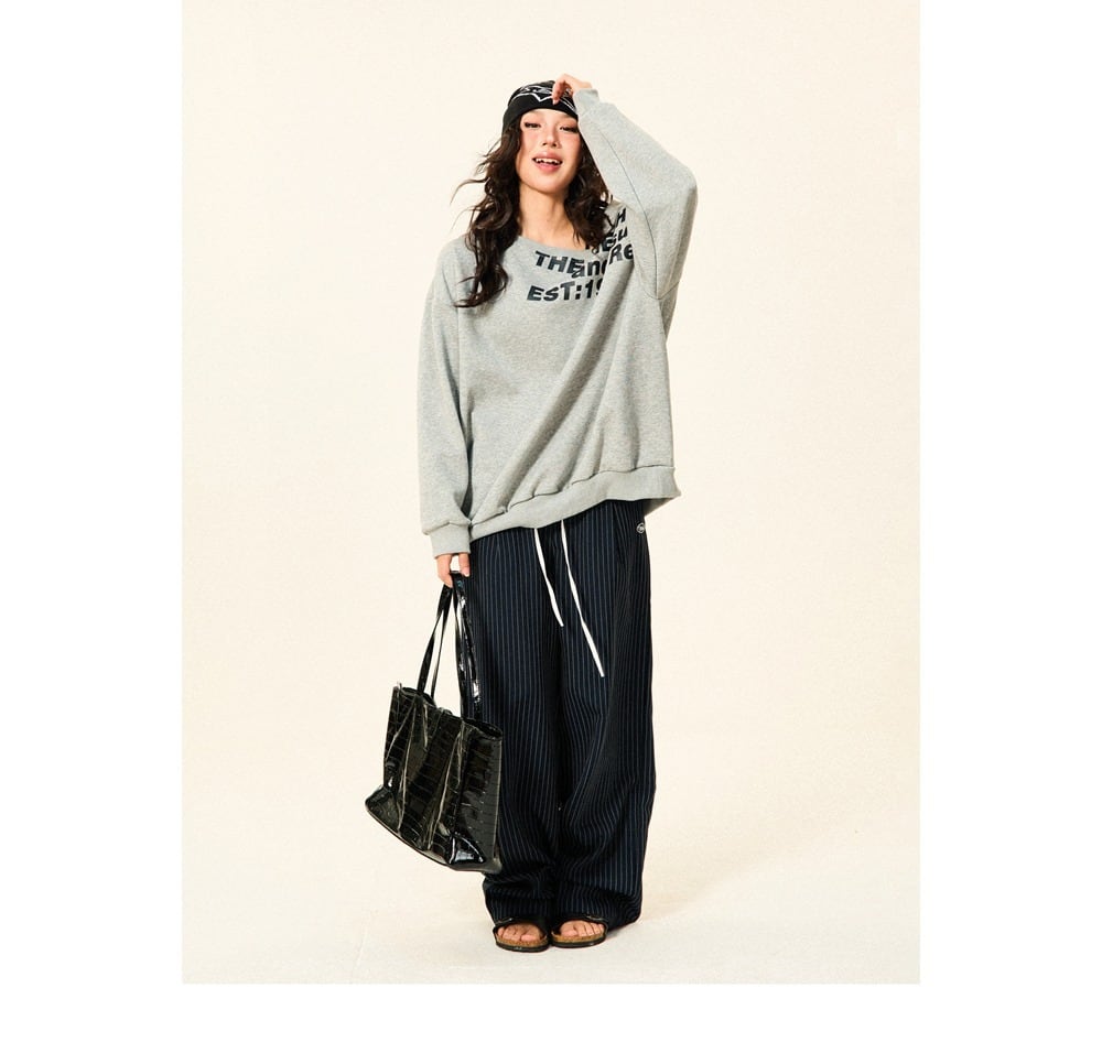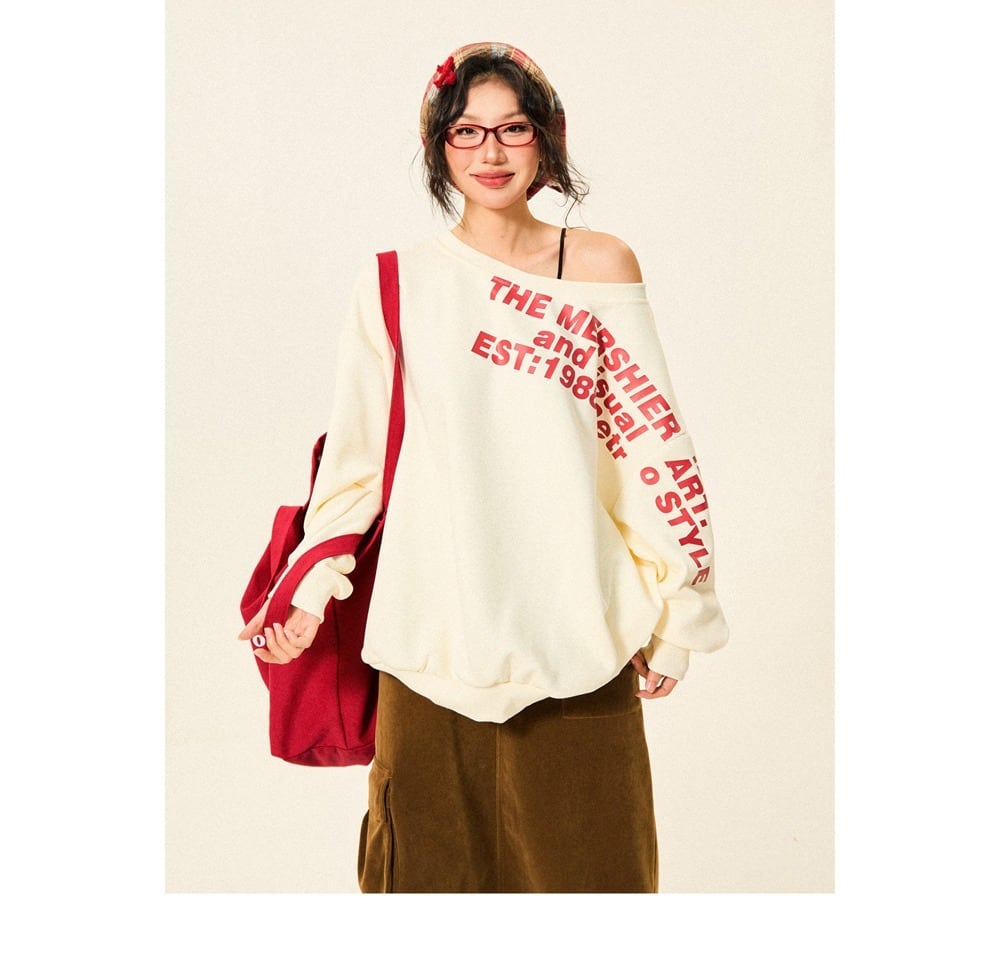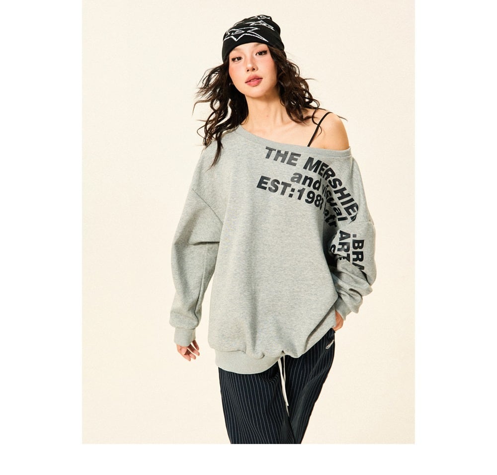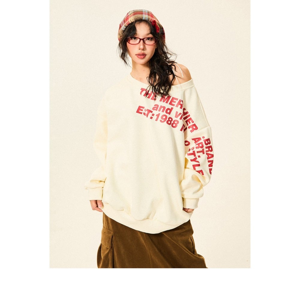 ★IVE ウォニョン 着用!!【DEAR MY KIKO】YOUNG STAGE Oblique Lettering Loose Off-shoulder Sweatshirt (2color)