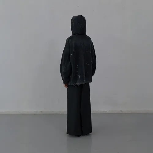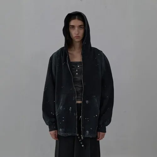 ハンドペインティングが特徴のデニムフードジャケットです。