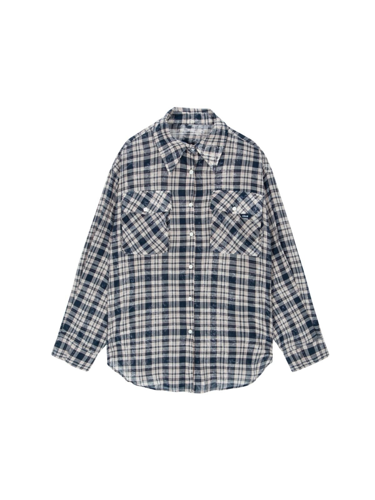 ★Hearts2Hearts ジウ 着用!!【asif CALIE】NEW DIRTYWASHING OVERFIT CHECK SHIRT NAVY