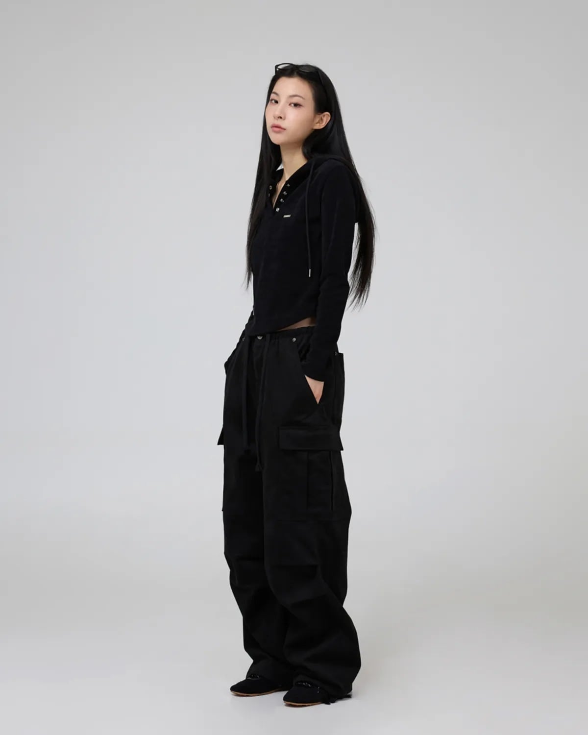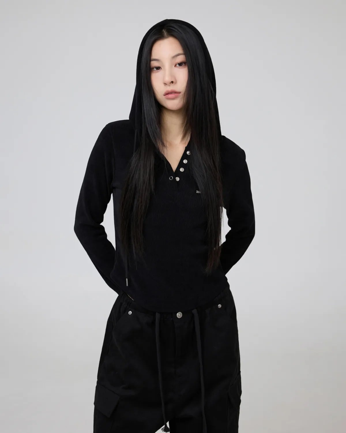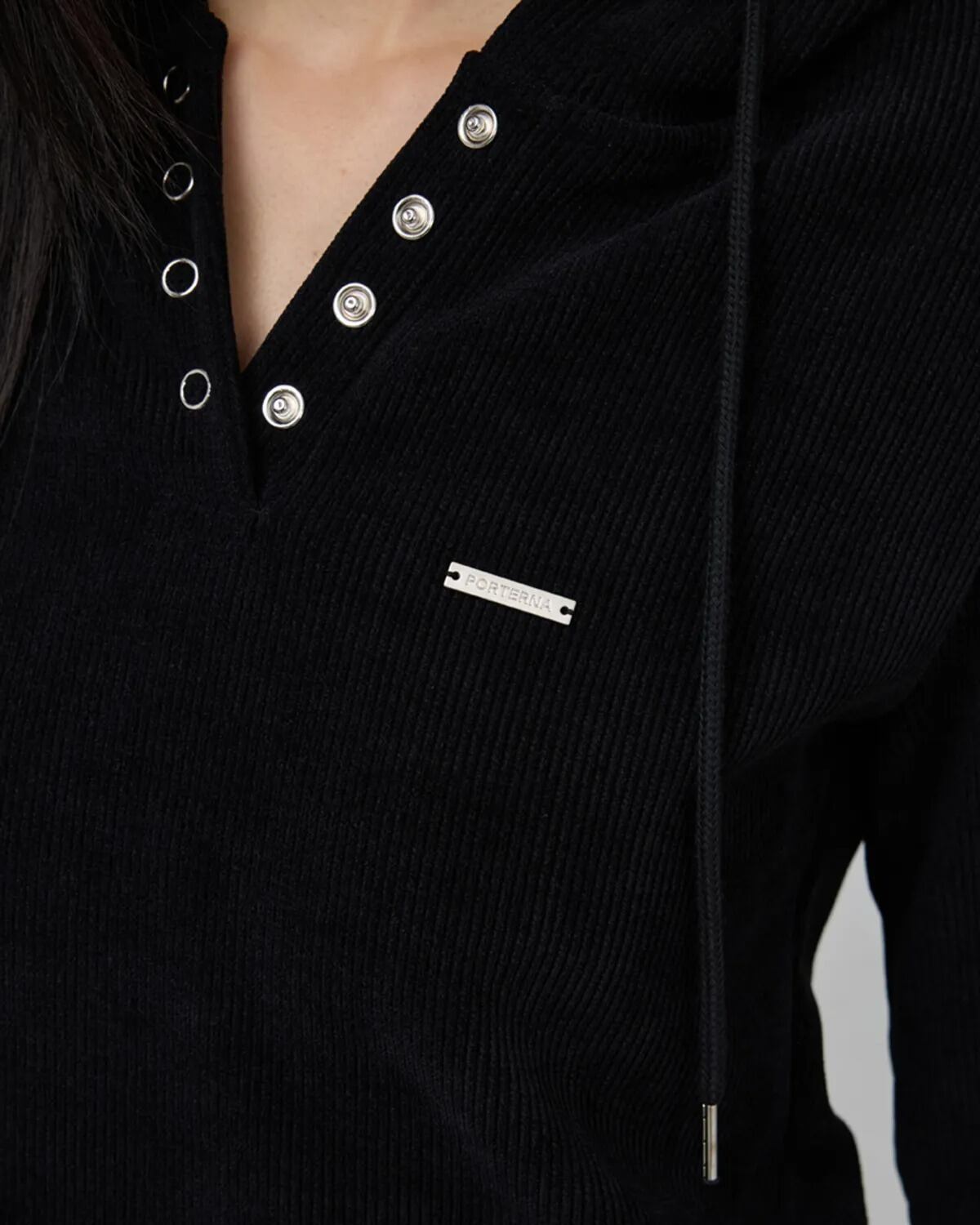 ★STAYC セウン 着用!!【PORTERNA】CORDUROY LOGO HOODIE TOP-BLACK