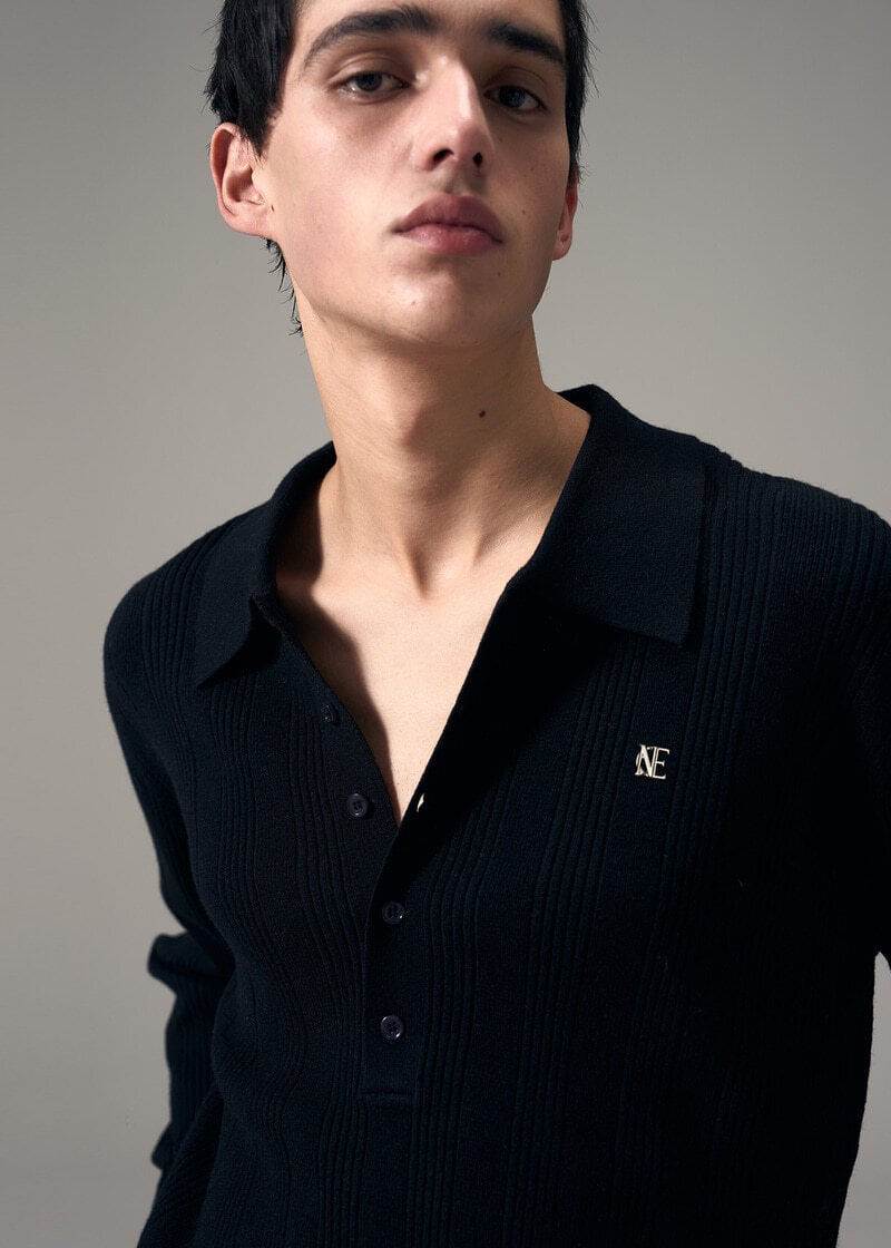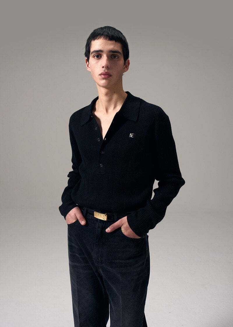 ★TXT スビン 着用!!【NOICE】MERINO RIBBED KNIT POLO SHIRT - BLACK