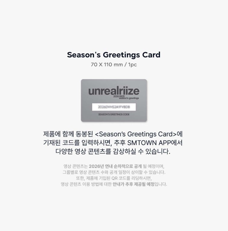 10/26まで!!★【RIIZE】2026 SM ARTIST SEASON'S GREETINGS