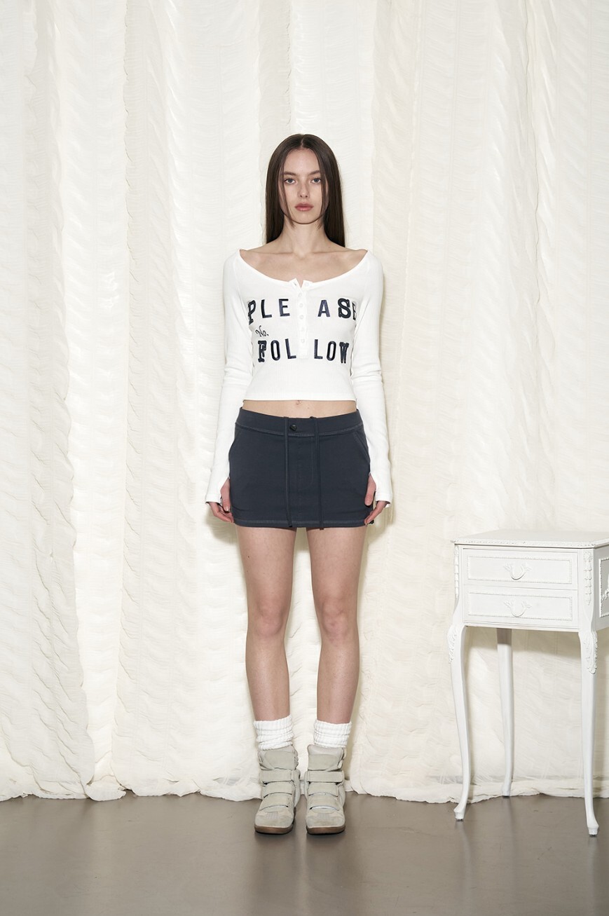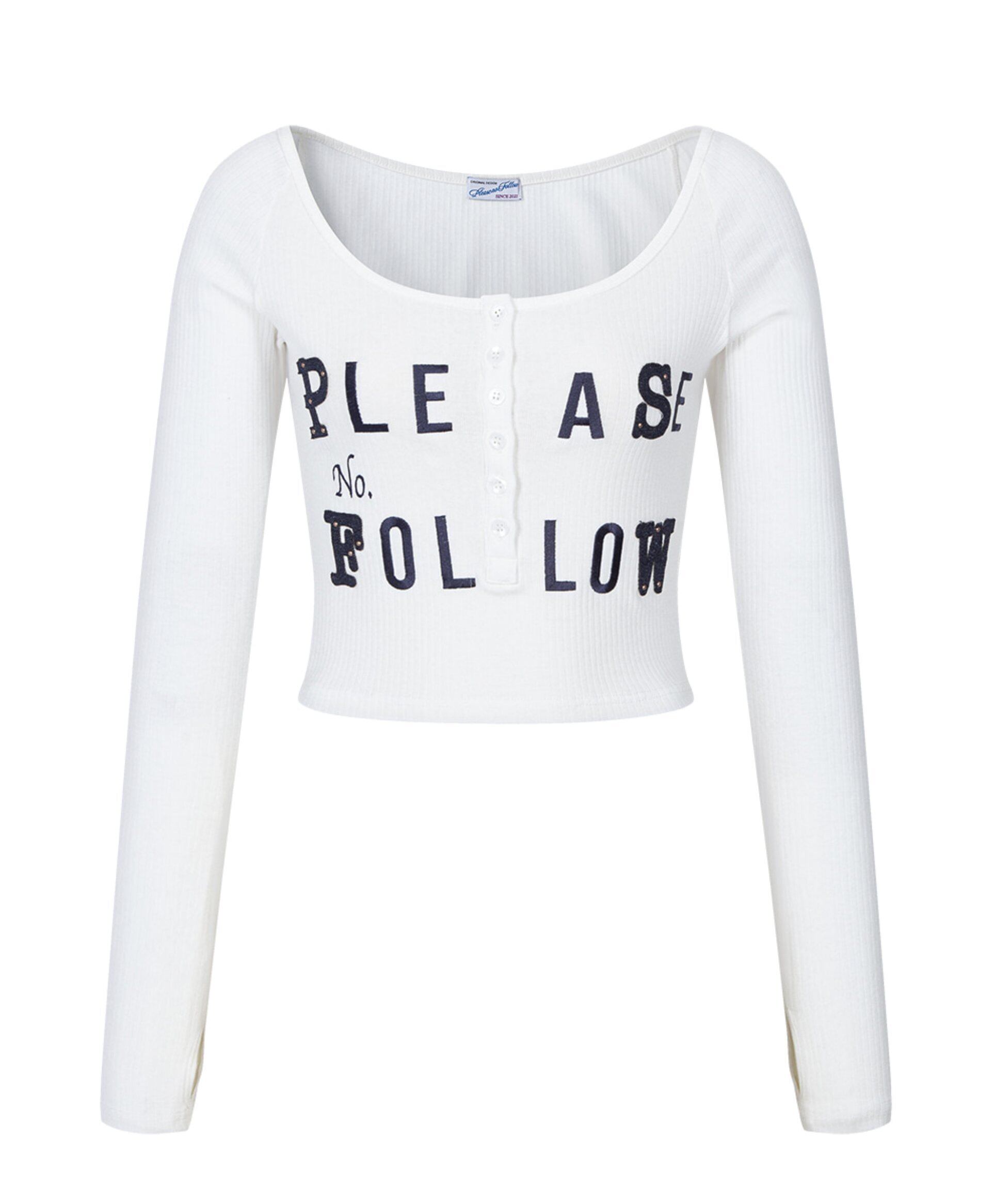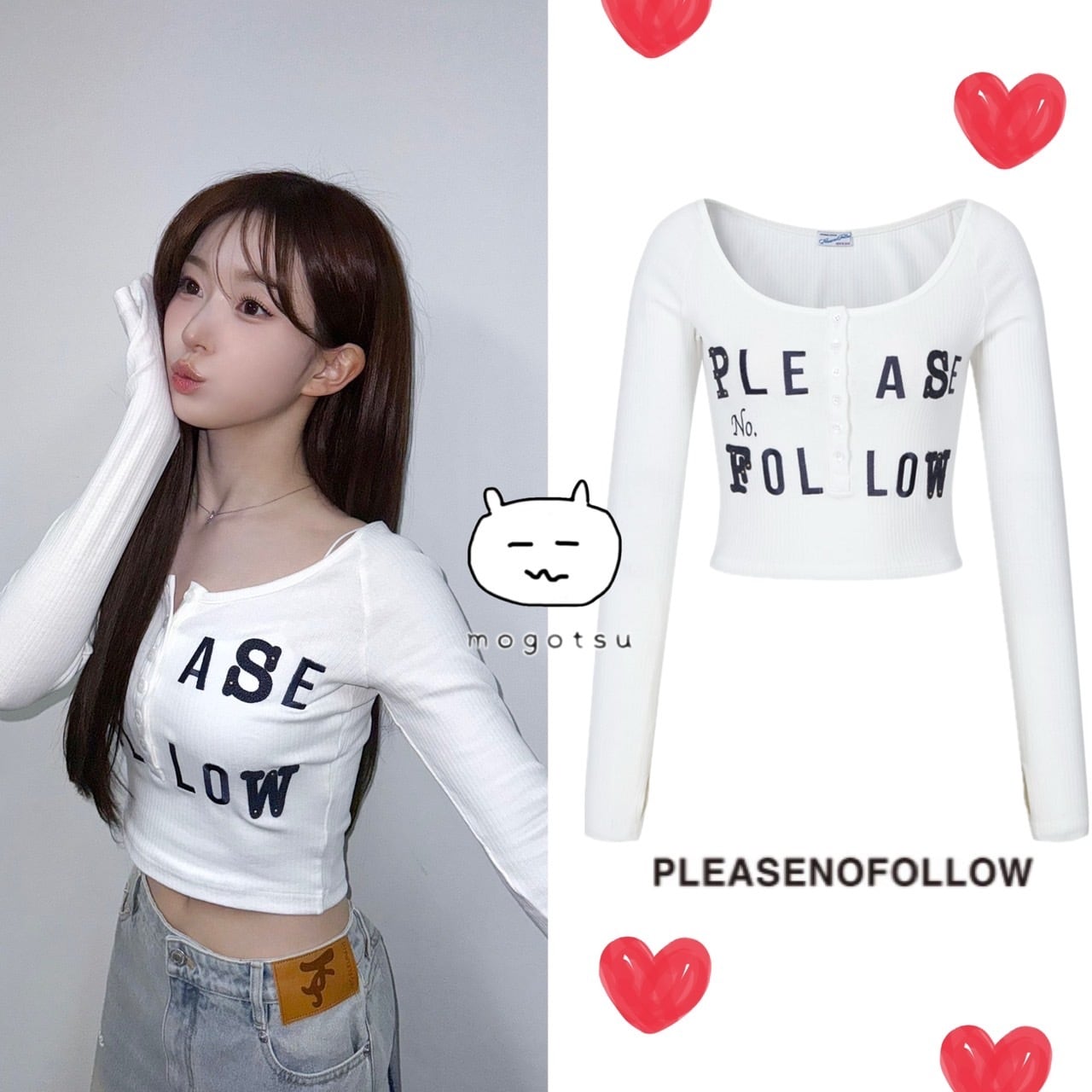★NMIXX へウォン 着用!!【PLEASENOFOLLOW】Megan Patch Long Sleeve Top (White)