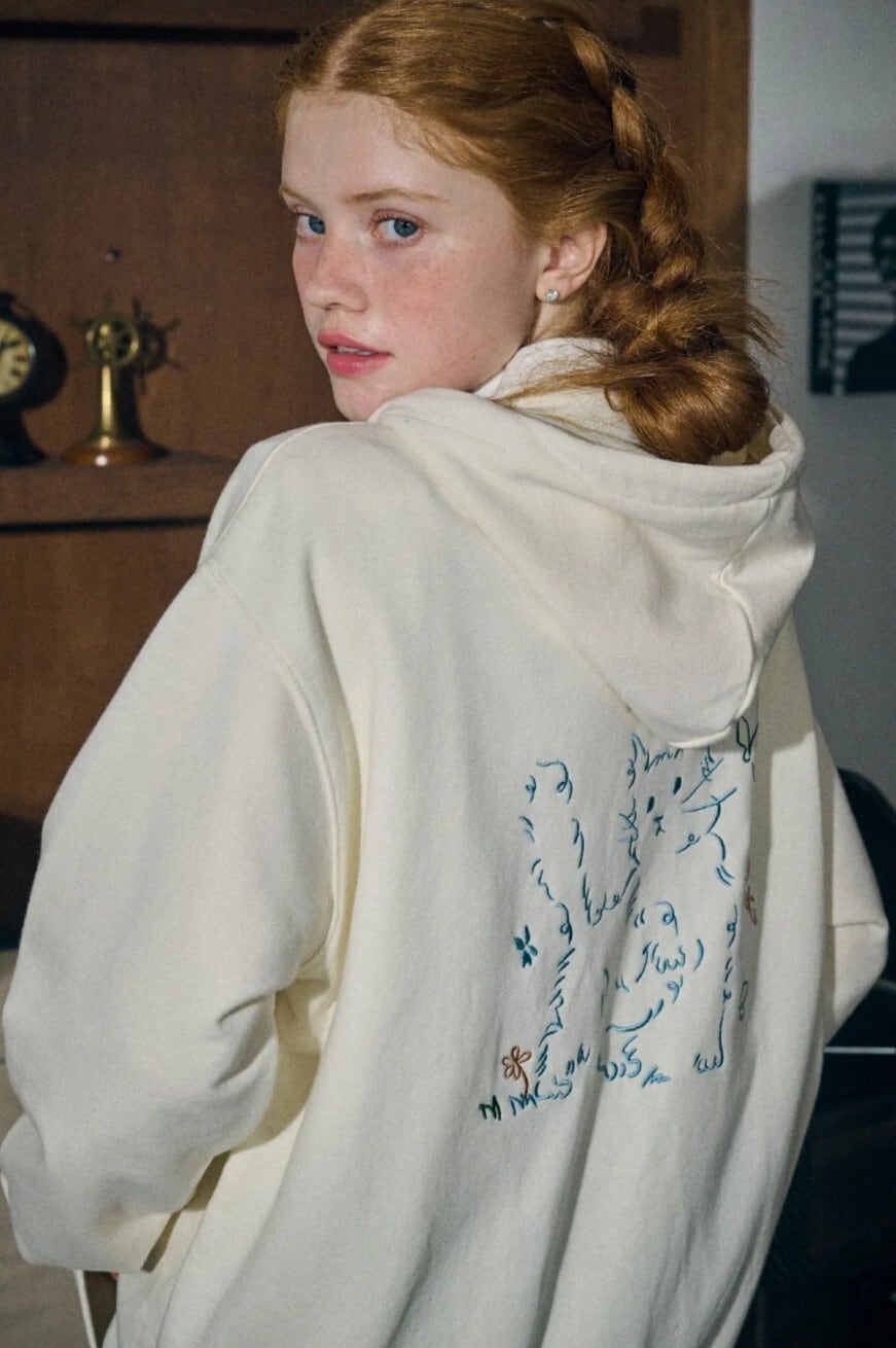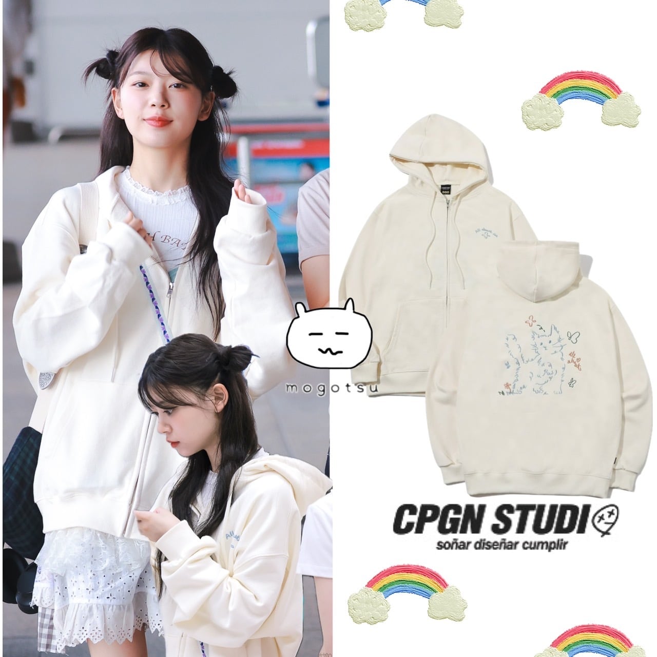 ★ILLIT モカ 着用!!【CPGN STUDIO】About Love CAT Embroidered Hooded Zip-Up Cream