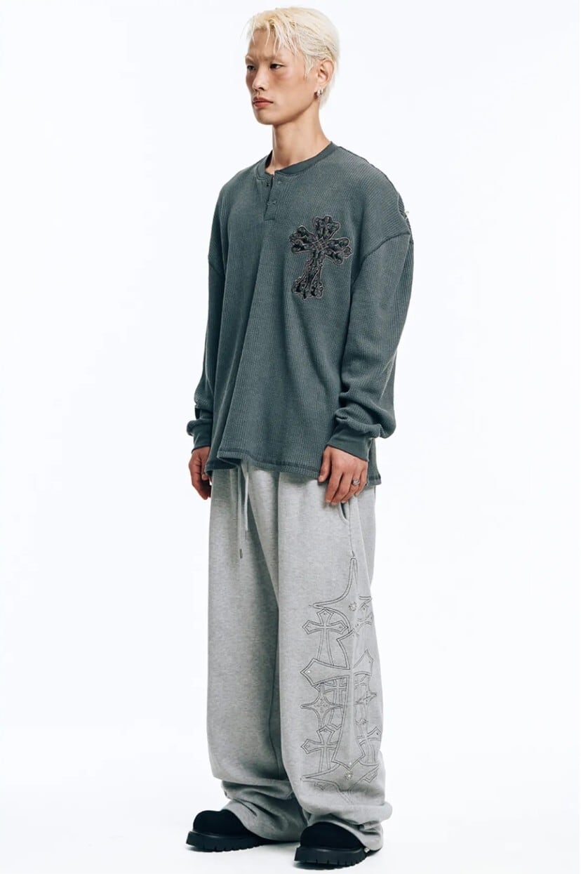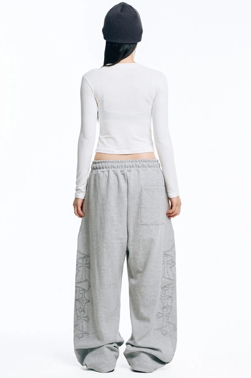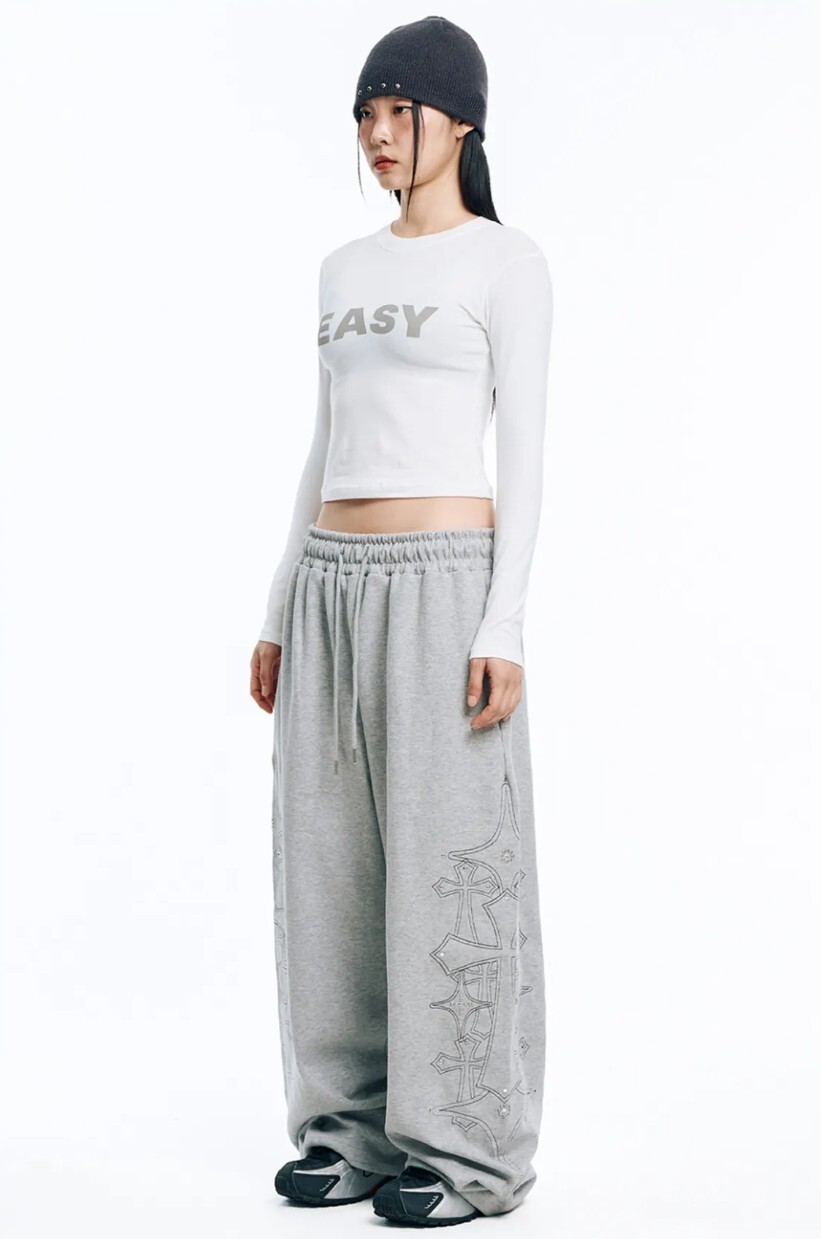 ★MEOVV ガウォン 着用!!【EASY NO EASY】Stud Needle Work Sweat Pants-Gray