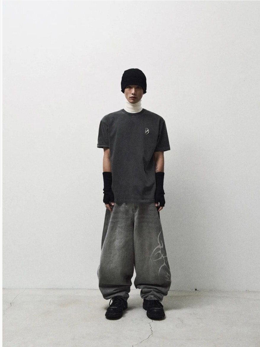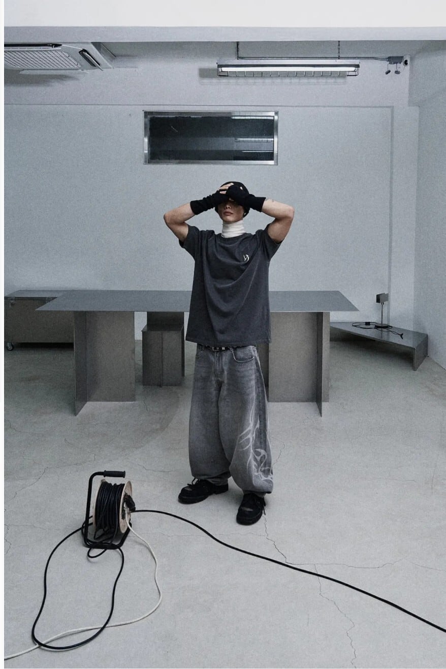 ★MEOVV アンナ 着用!!【DSMT】FLAME ARTWORK WIDE DENIM_GREY