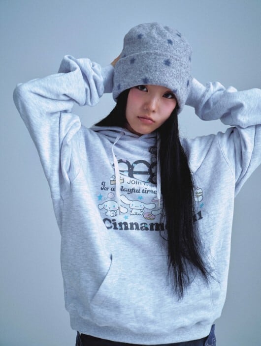 ★【AEAE X Cinnamoroll】AEAE Cinnamoroll Web Logo Loosed Hoodie Light Grey