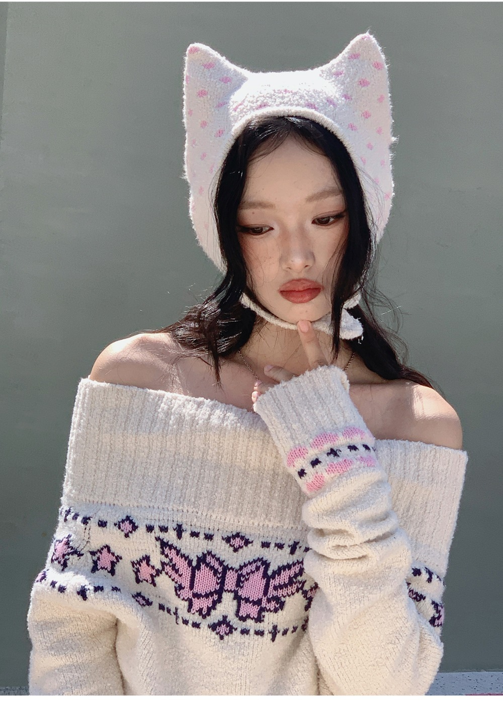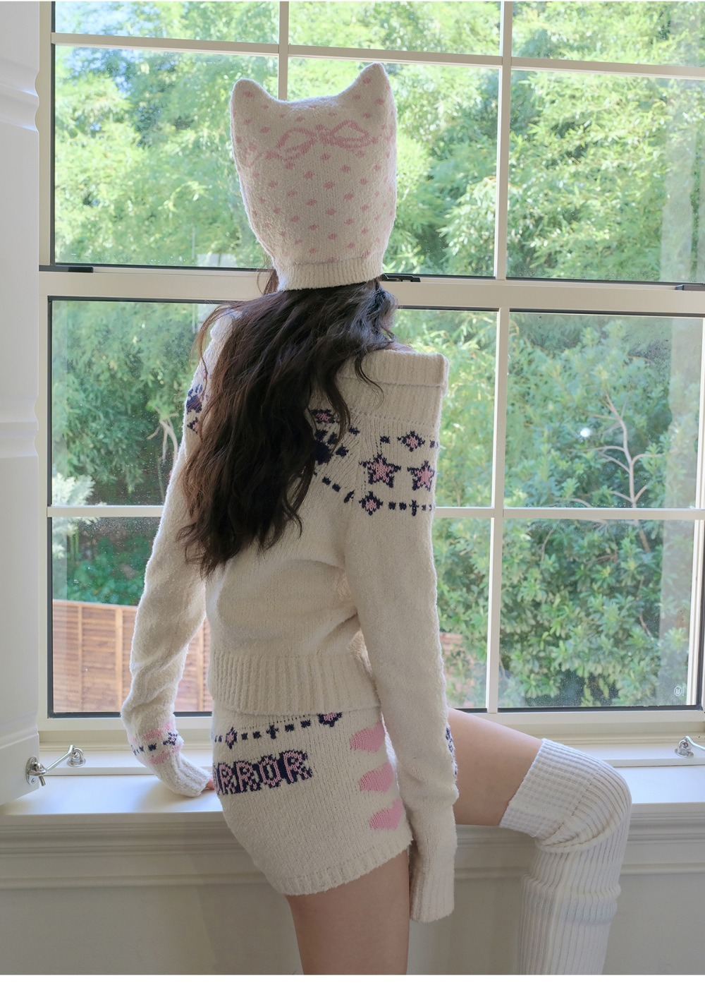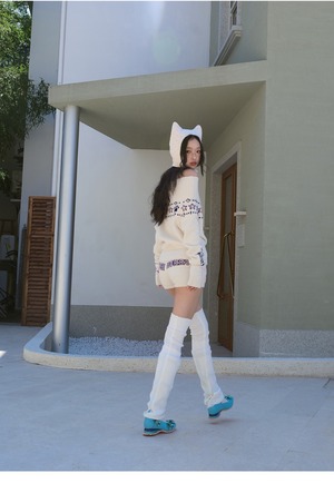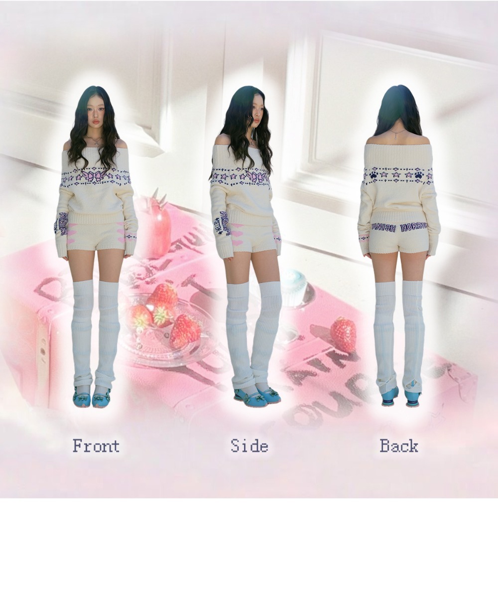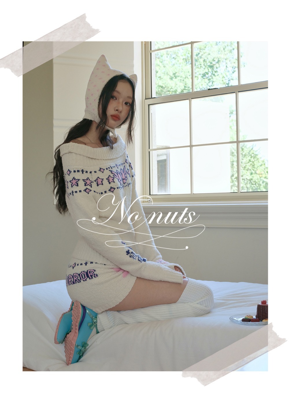 ★【DEAR MY KIKO】NO NUTS Starlit Jacquard Ribbon Sweater