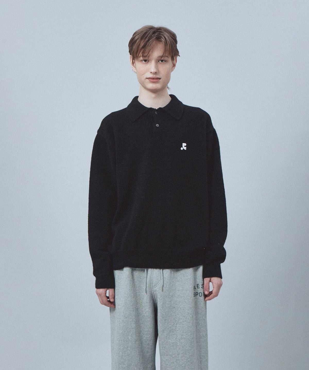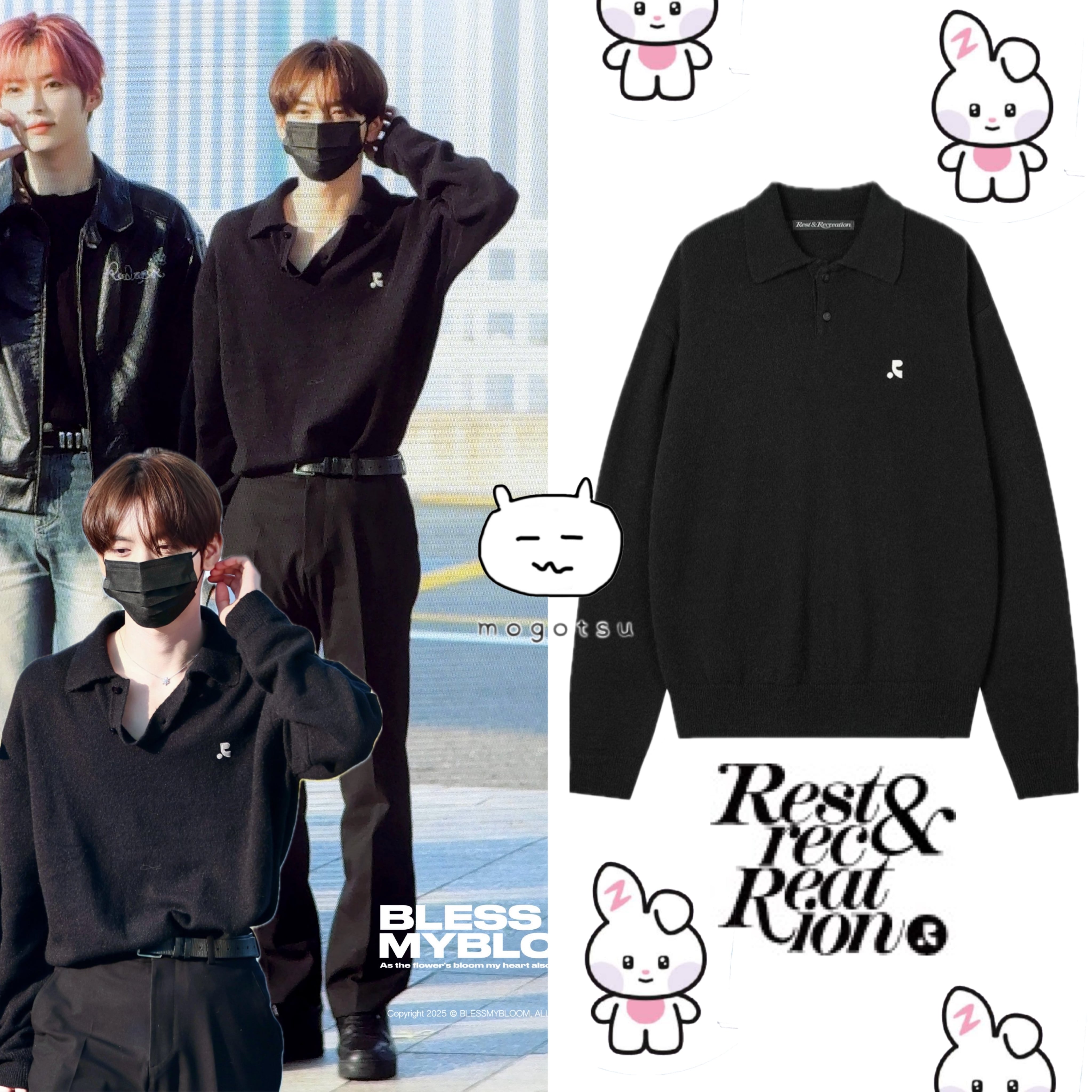 ★ZEROBASEONE ハンユジン 着用!!【REST&RECREATION】WOOL POLO KNIT TOP - BLACK