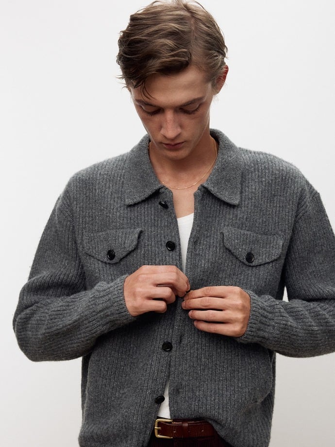 コットン混のウール素材と綿糸を使用した、しっかりとした厚みのあるニットジャケットです。
