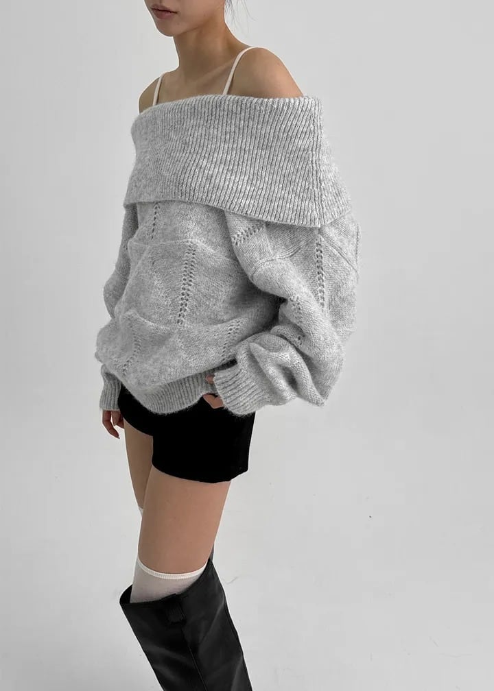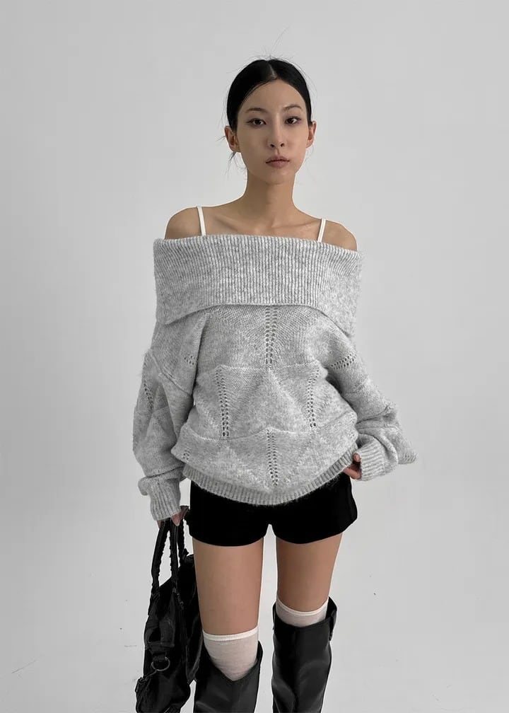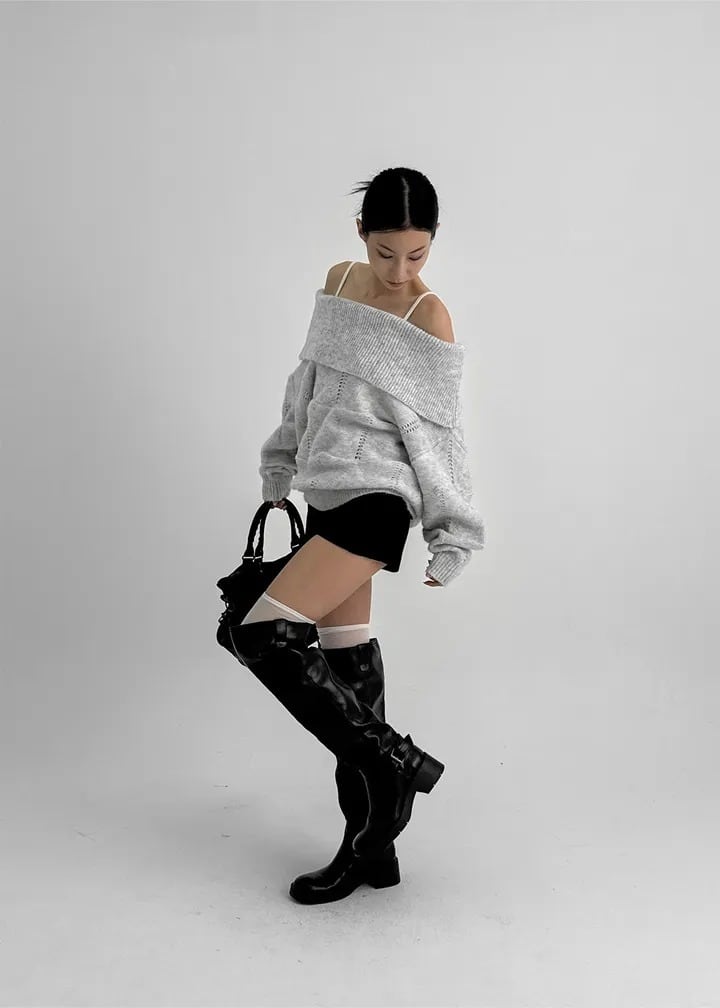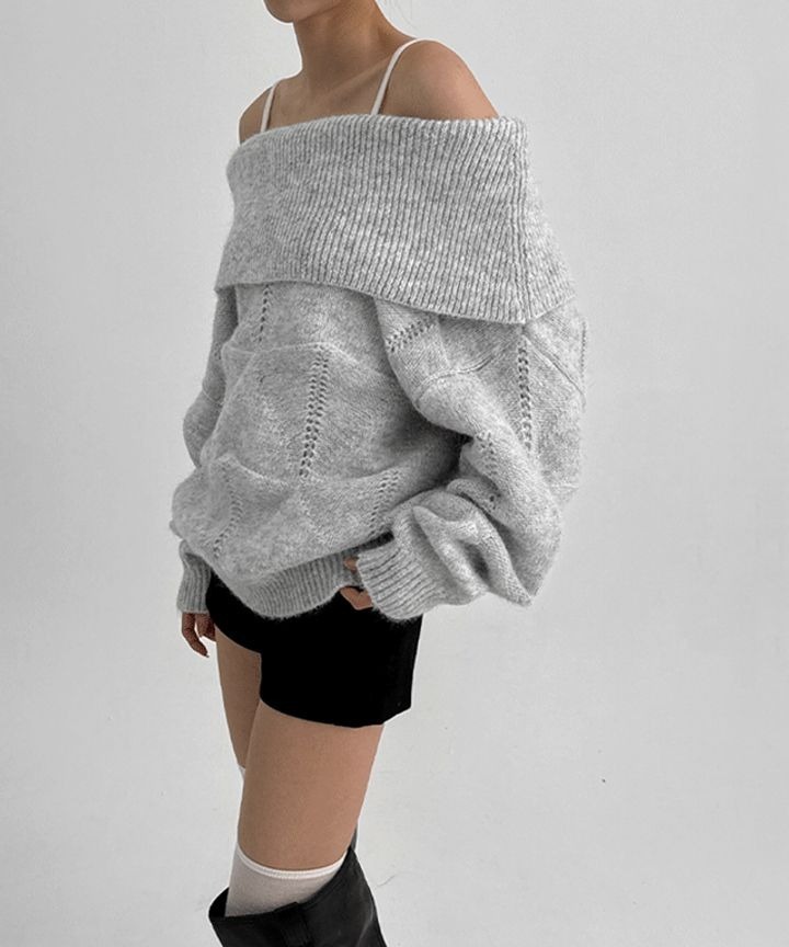 ★Hearts2Hearts ステラ 着用!!【BLACKUP】Kenned Punching Off-Shoulder Wool Knitwear