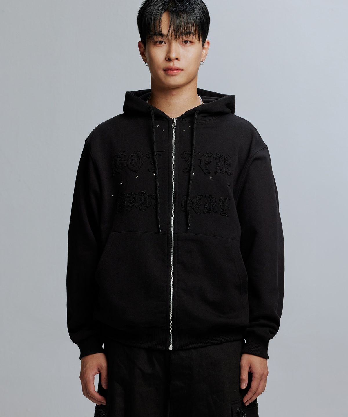 ★ZEROBASEONE ハンユジン 着用!!【GOTTER GALLERY】APPLIQUE STUD HOOD ZIP-UP_BLACK