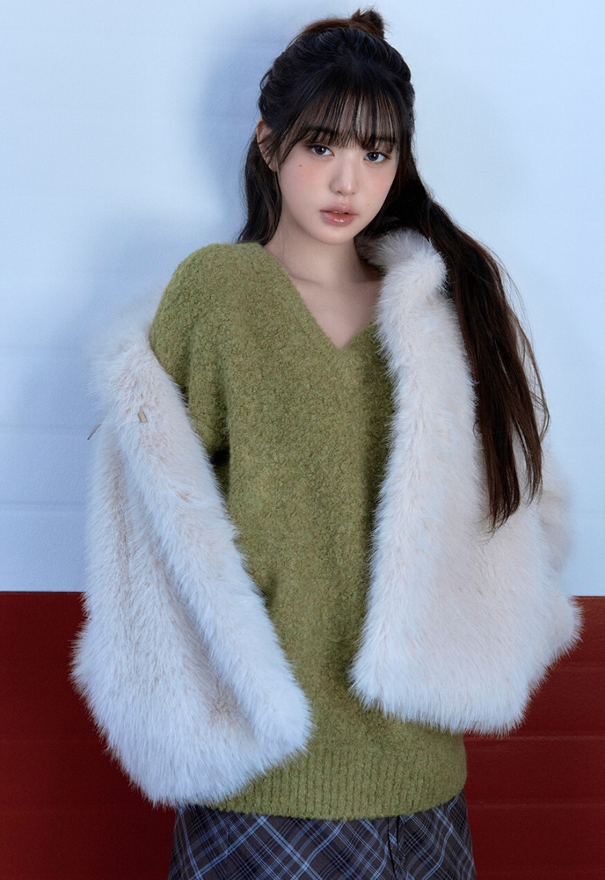 ☆rolarola人気商品最低価!!★IVE ウォニョン 着用!!【rolarola】COLLAR FUR JACKET IVORY