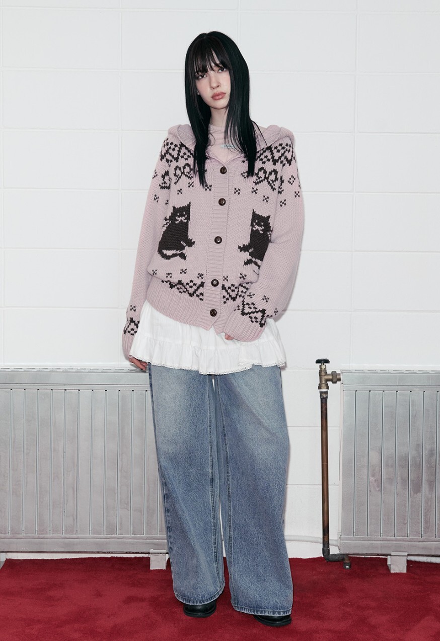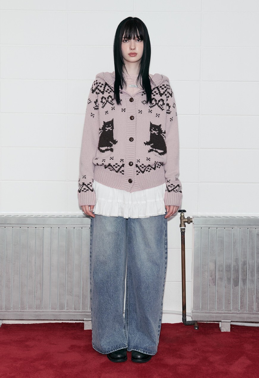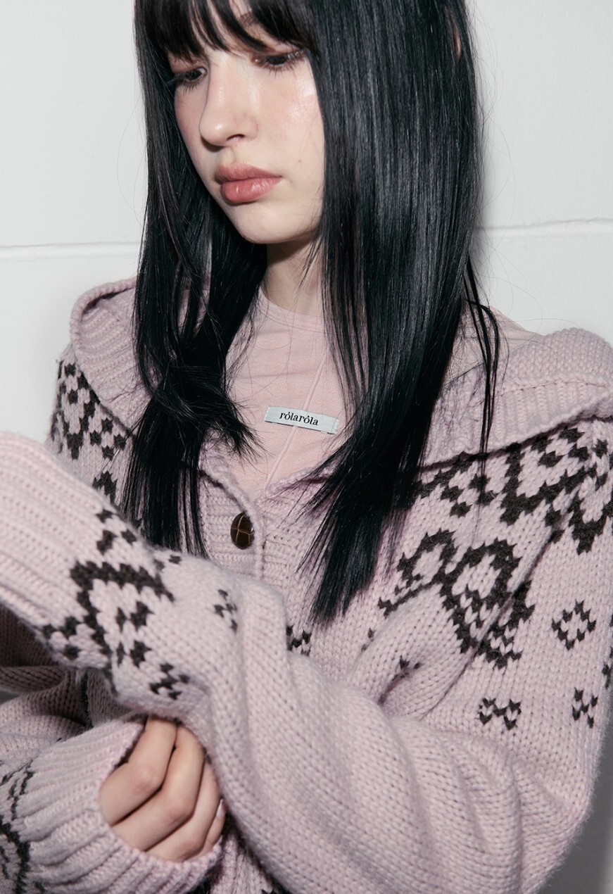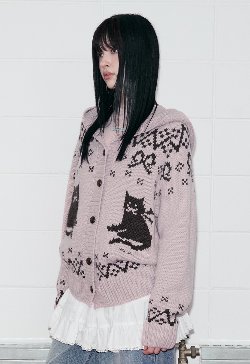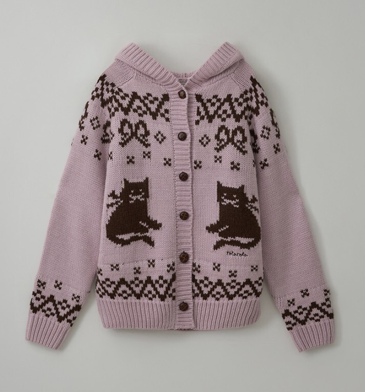 rolarola人気商品最低価!!★【rolarola】CAT JACQUARD HOODIE CARDIGAN PINK