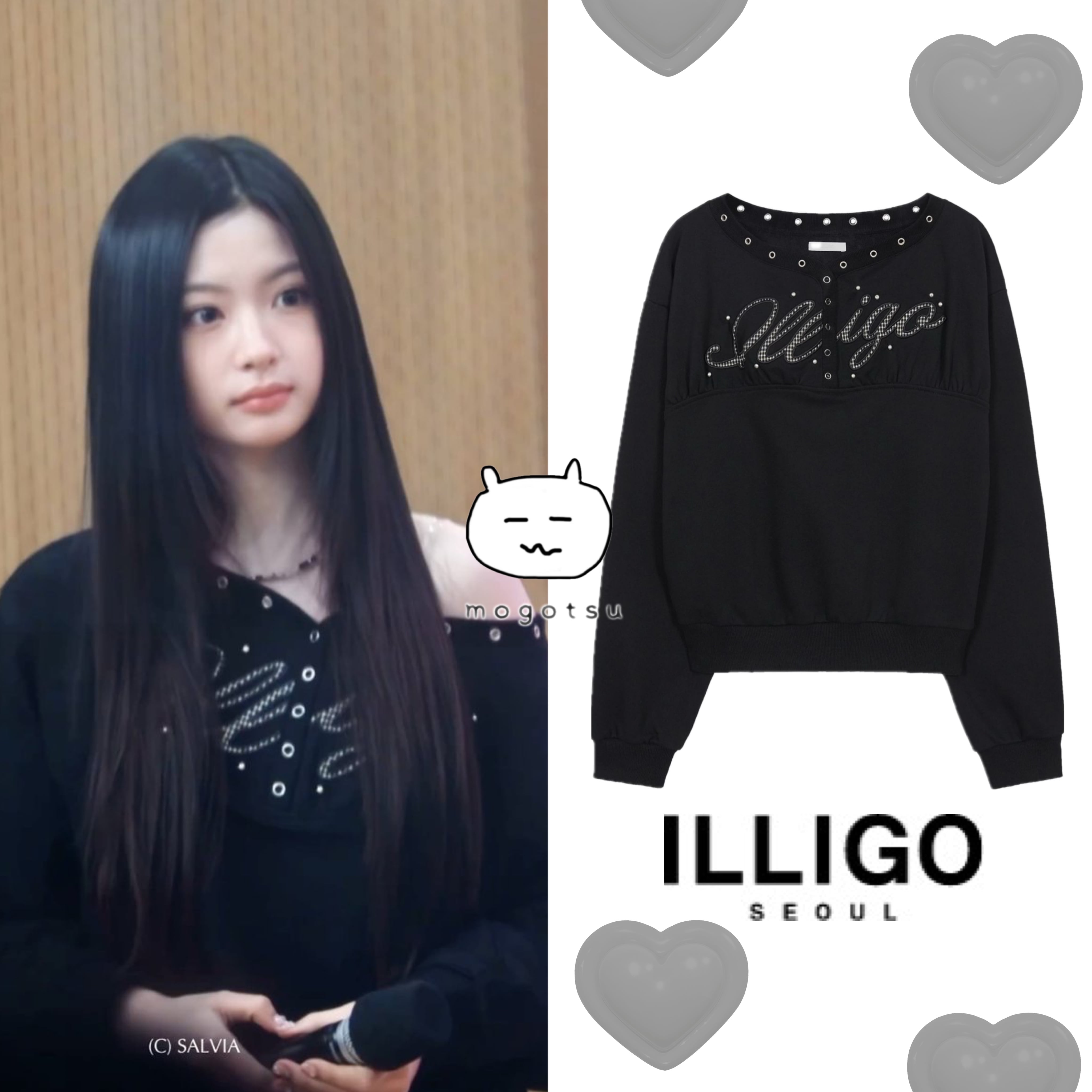 ★KiiiKiii キヤ 着用!!【ILLIGO】Burton Eyelet Off-Shoulder Sweatshirt Black
