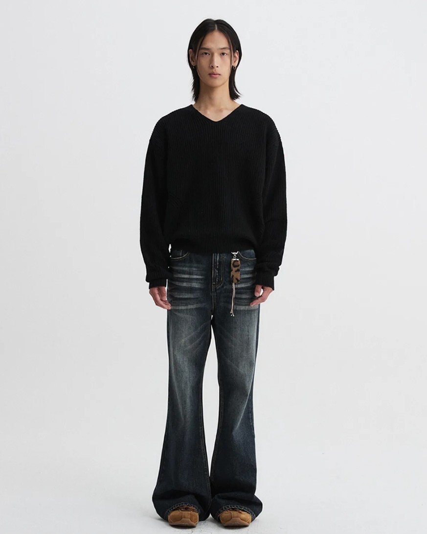 ★NCT WISH シオン 着用!!【DNSR】Legacy flare denim pants dark blue