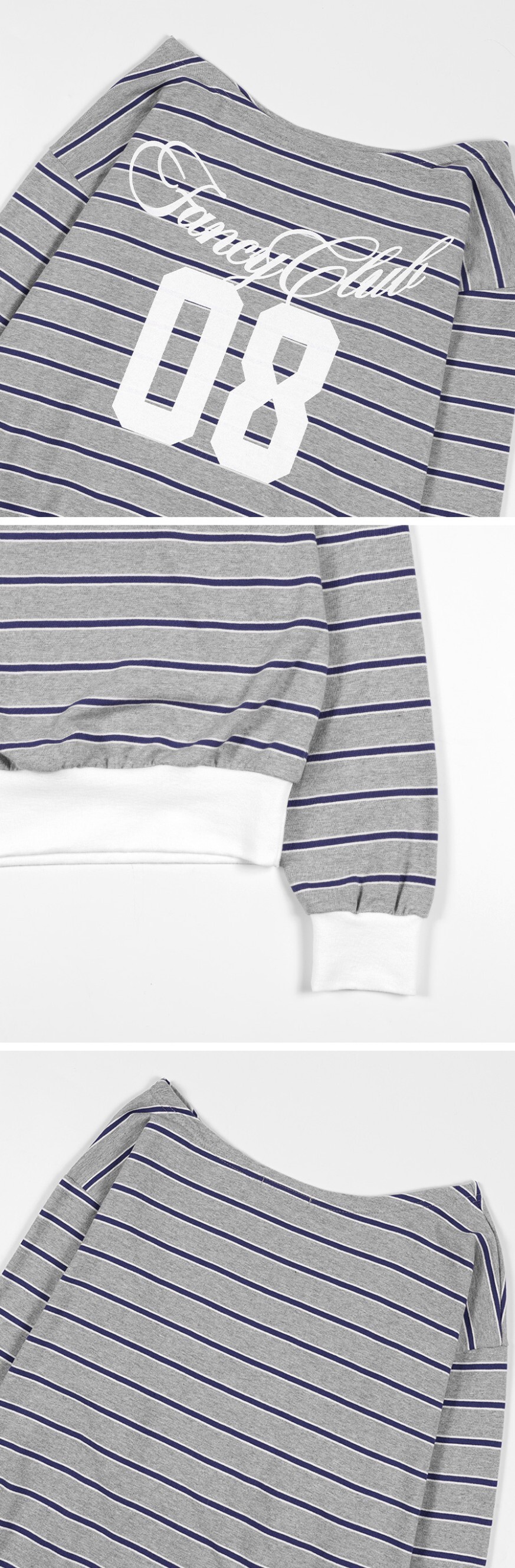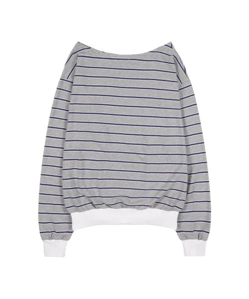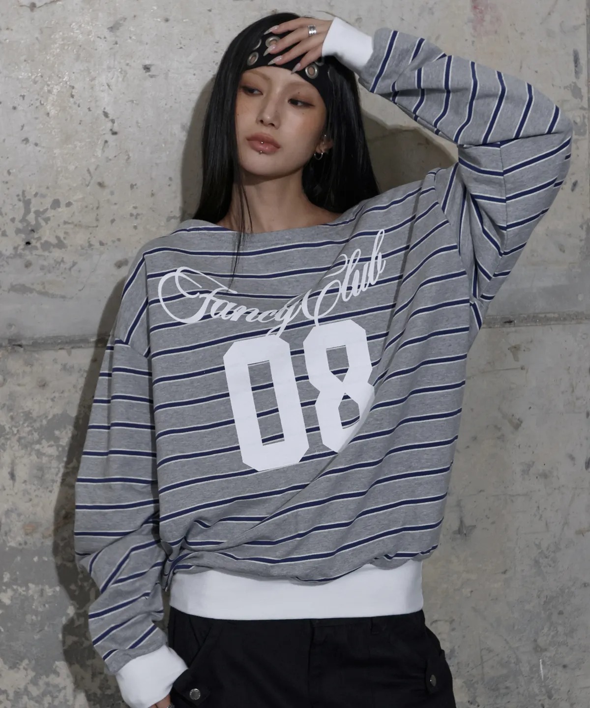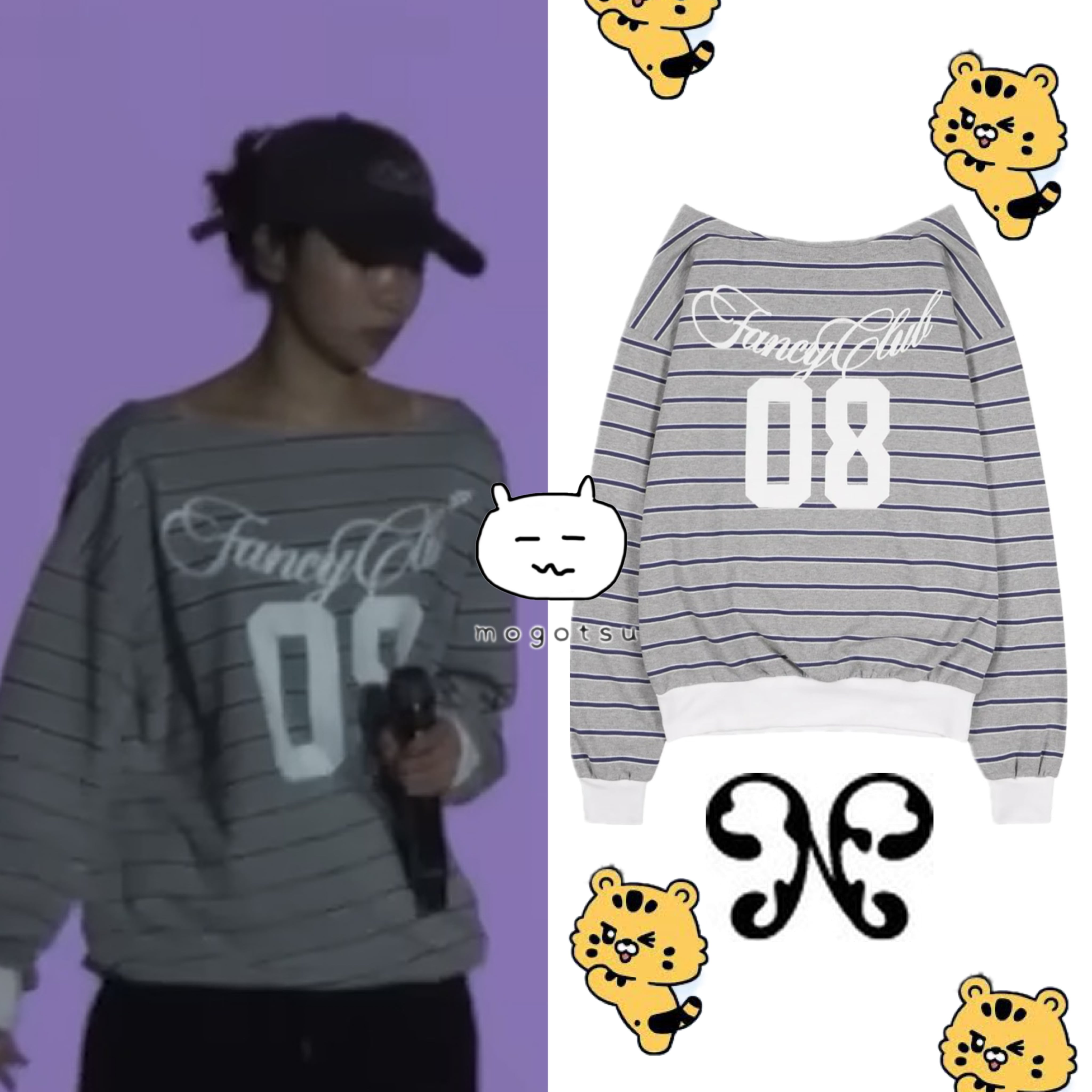 ★LE SSERAFIM チェウォン 着用!!【FANCY CLUB】Stripe One Shoulder Sweatshirt (GRAY)