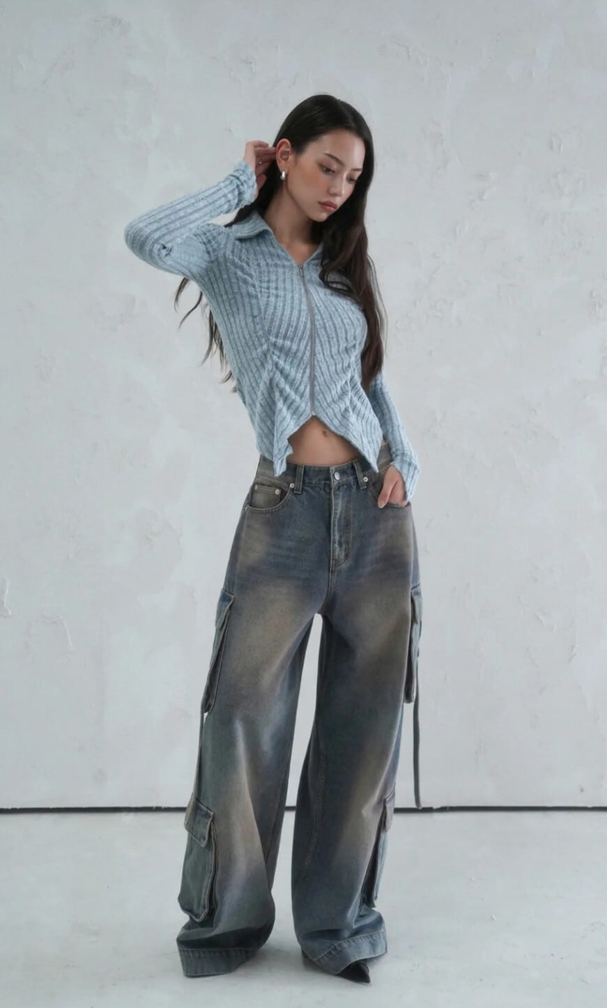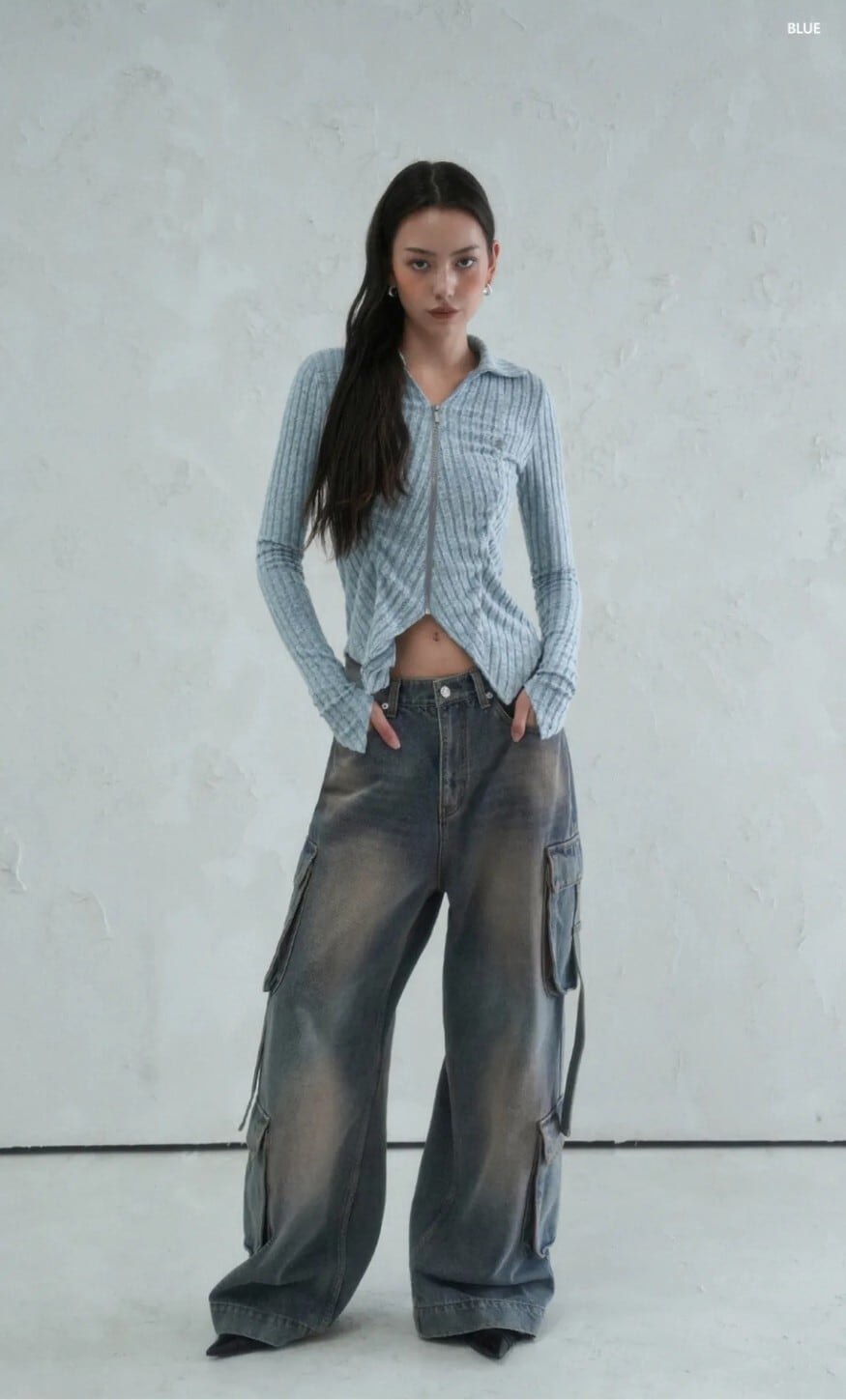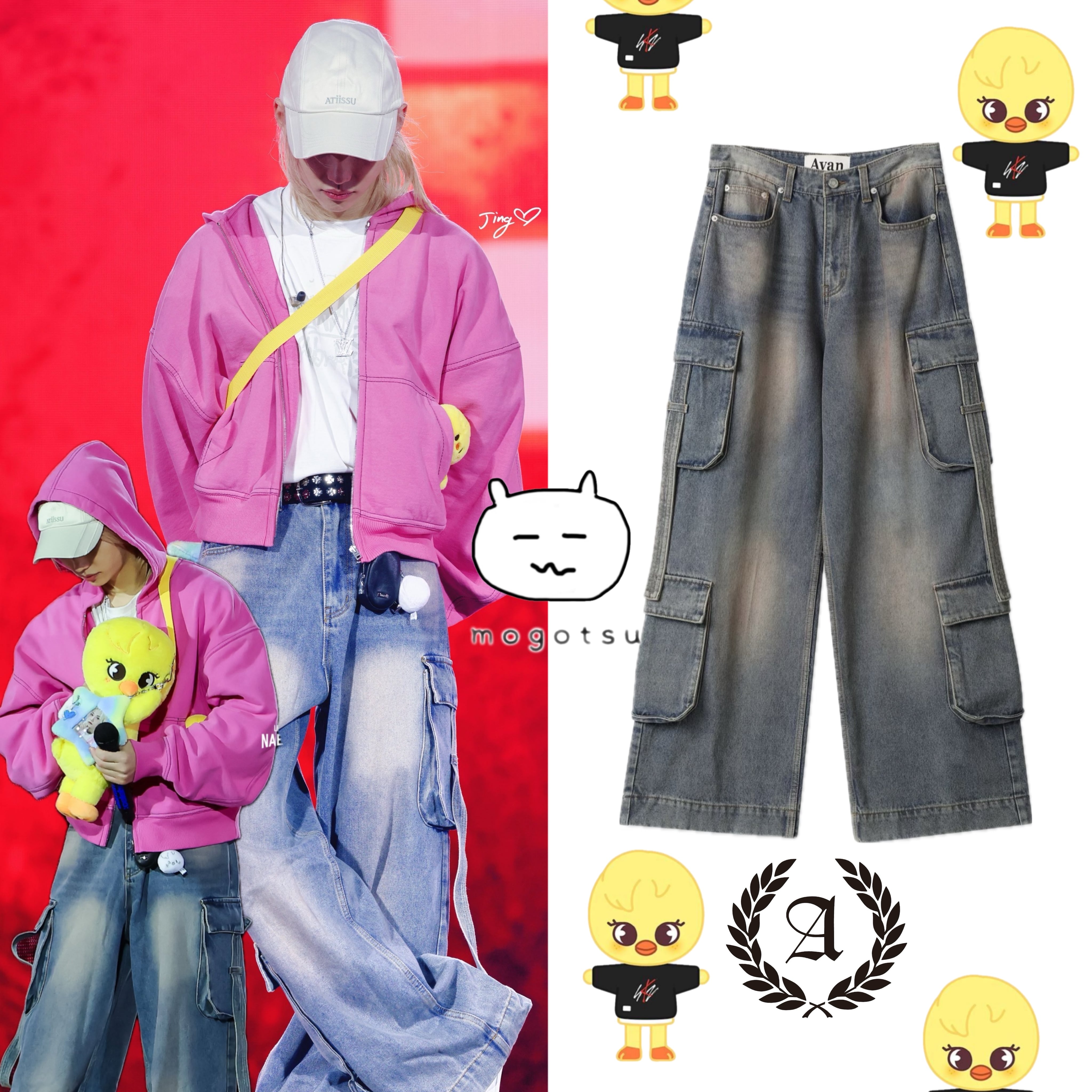 ★Stray Kids フィリックス 着用!!【AVANDRESS】Ribbon Wide Cargo Pants BLUE