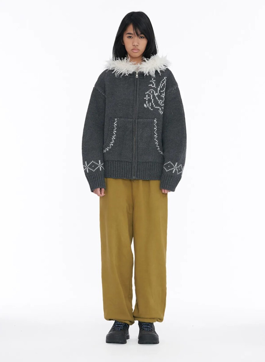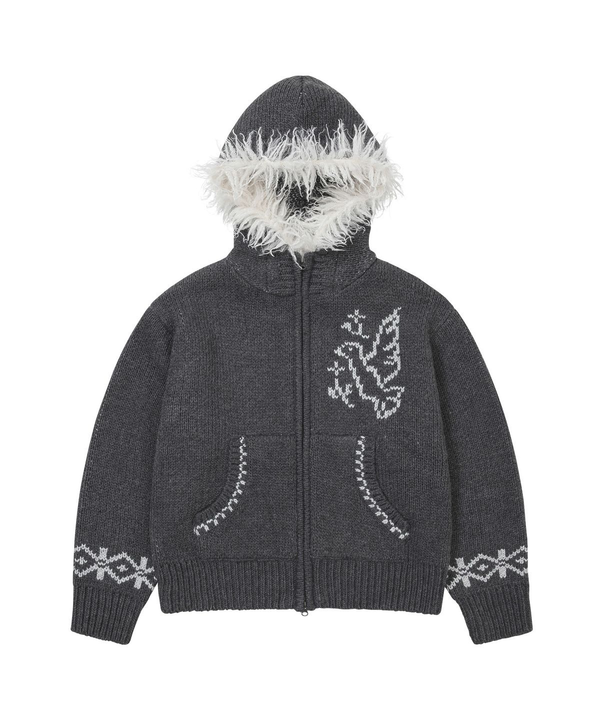 ★ILLIT イロハ 着用!!【WELLBEING EXPRESS】Fur Cowichan Hoodie Charcoal
