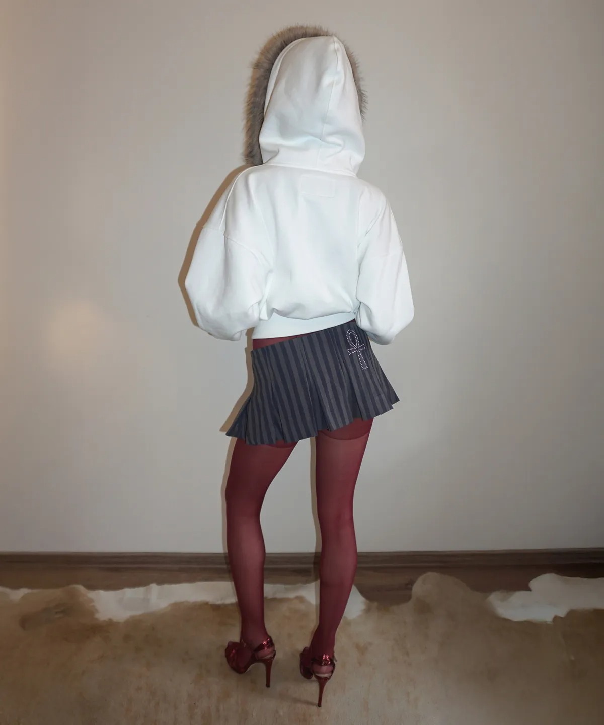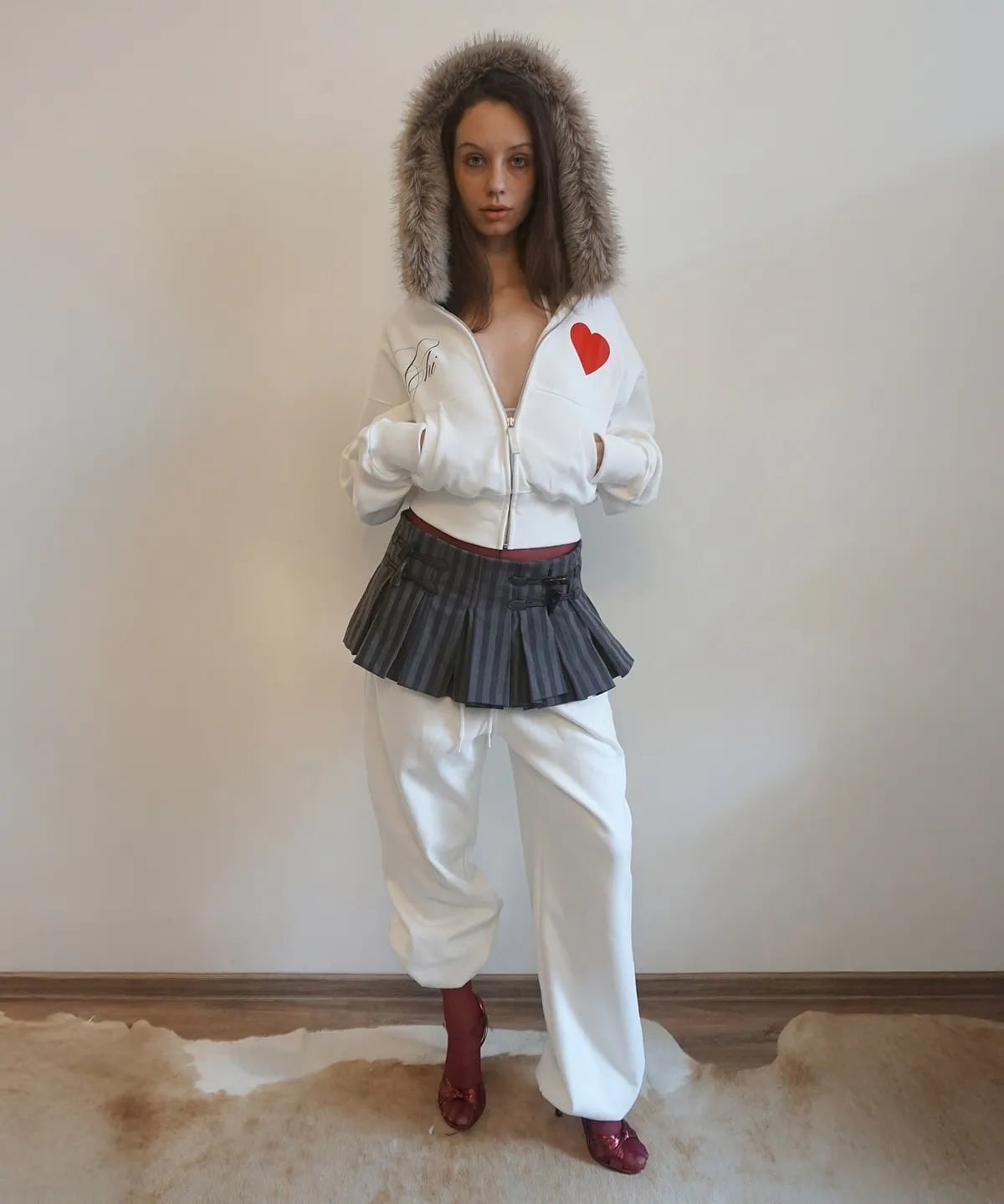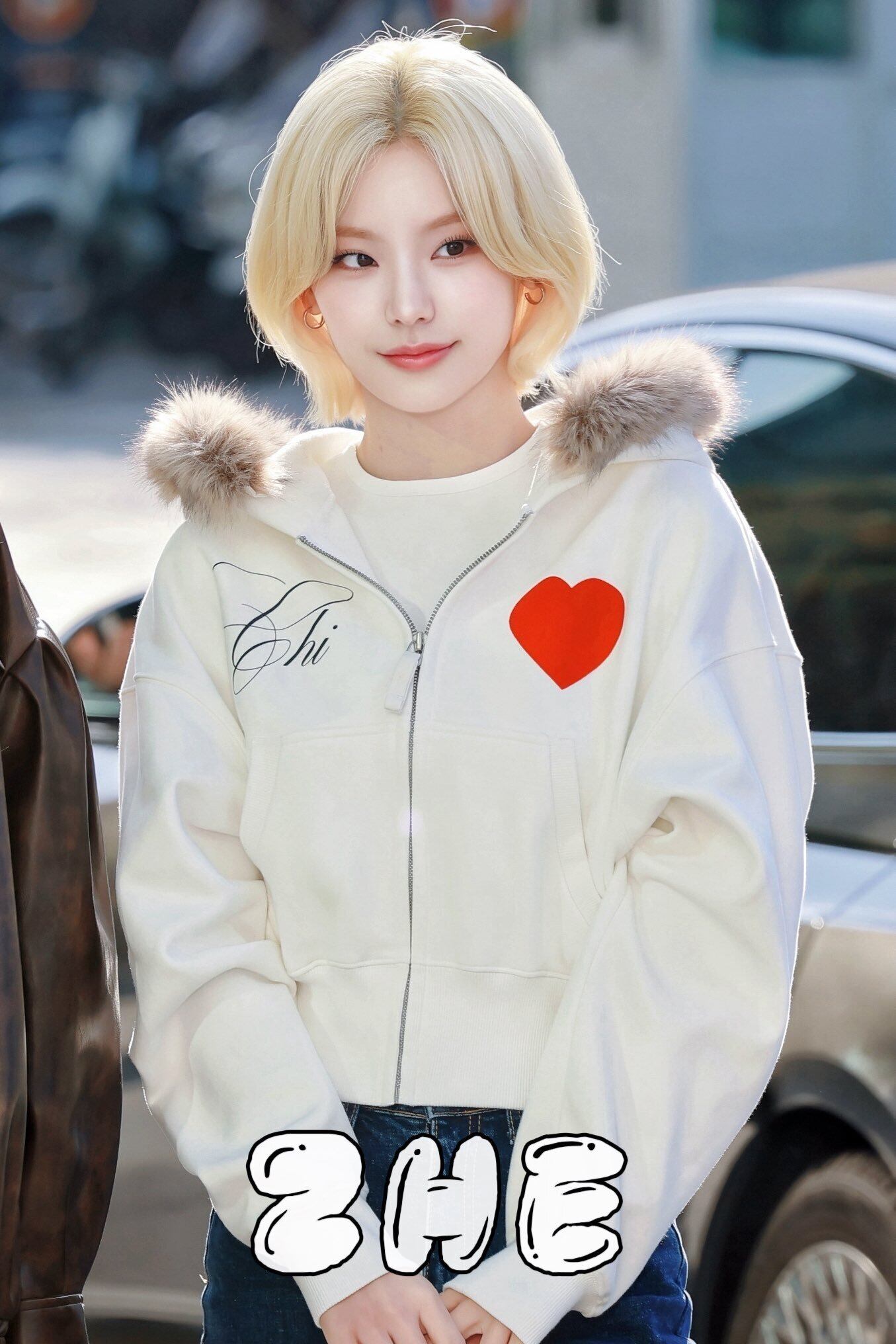 ★ITZY イェジ 着用!!【SCULPTOR】Faux Fur Trimming Hooded Zip-Up White