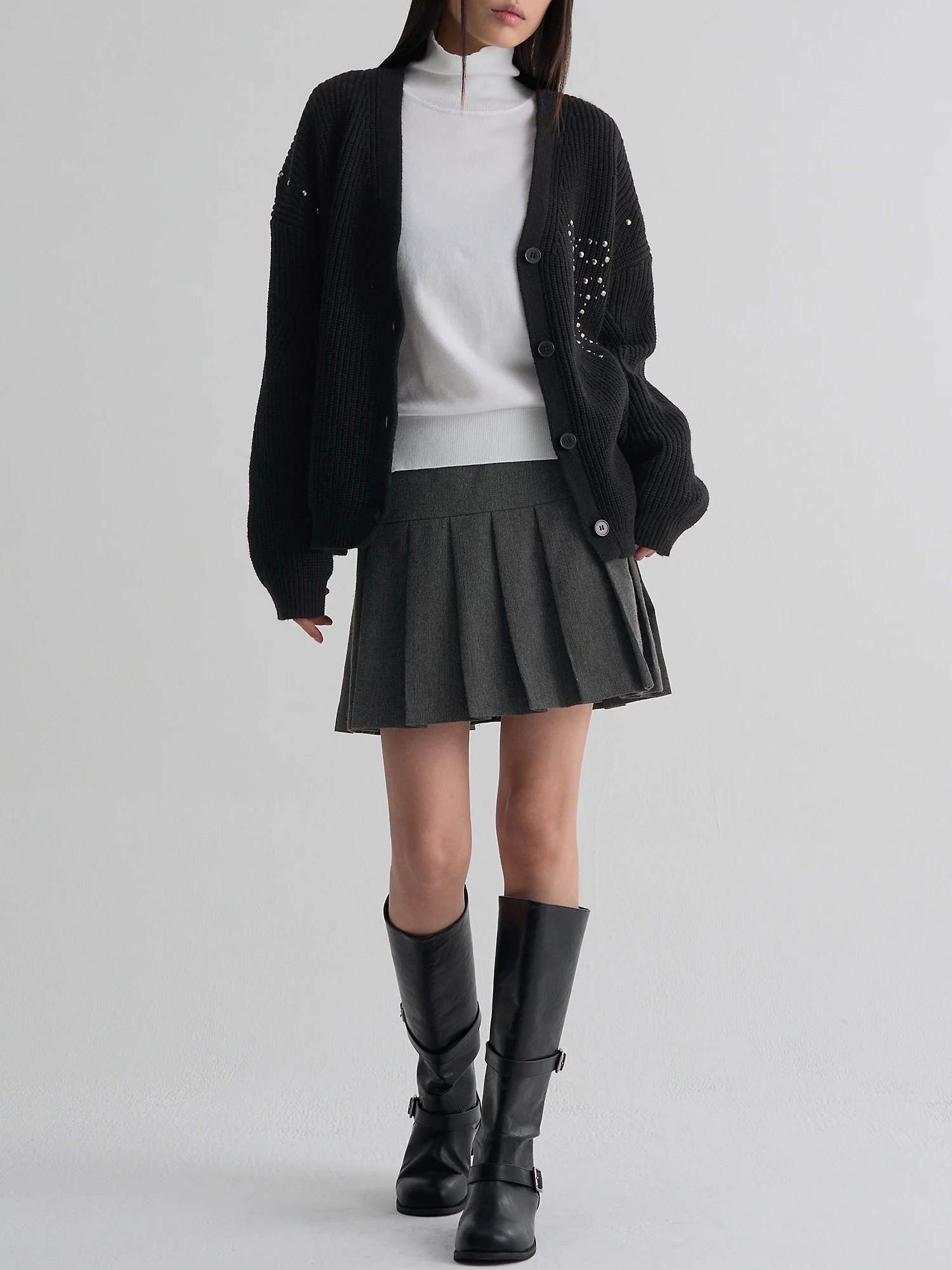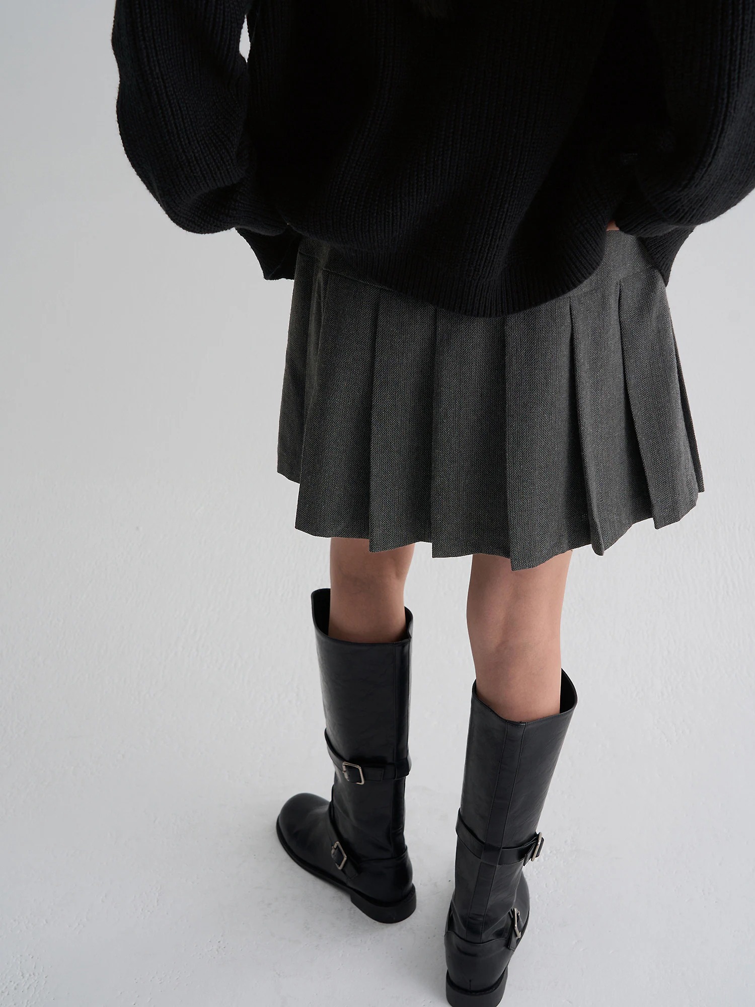 ヘリンボーンパターンがポイントのプリーツミニスカートです。