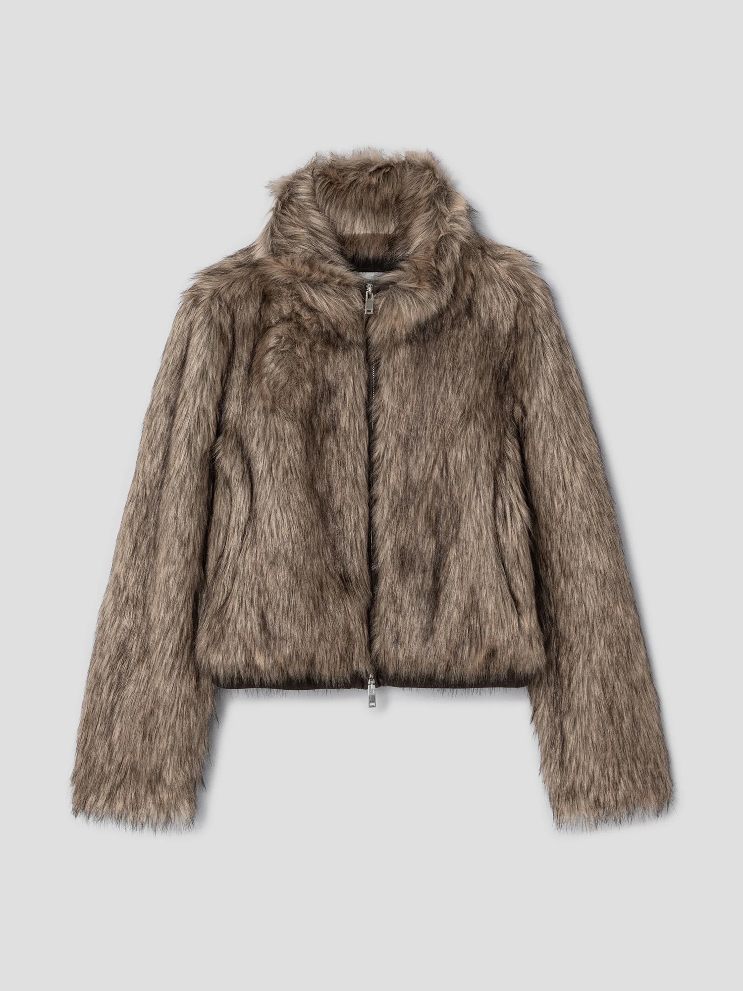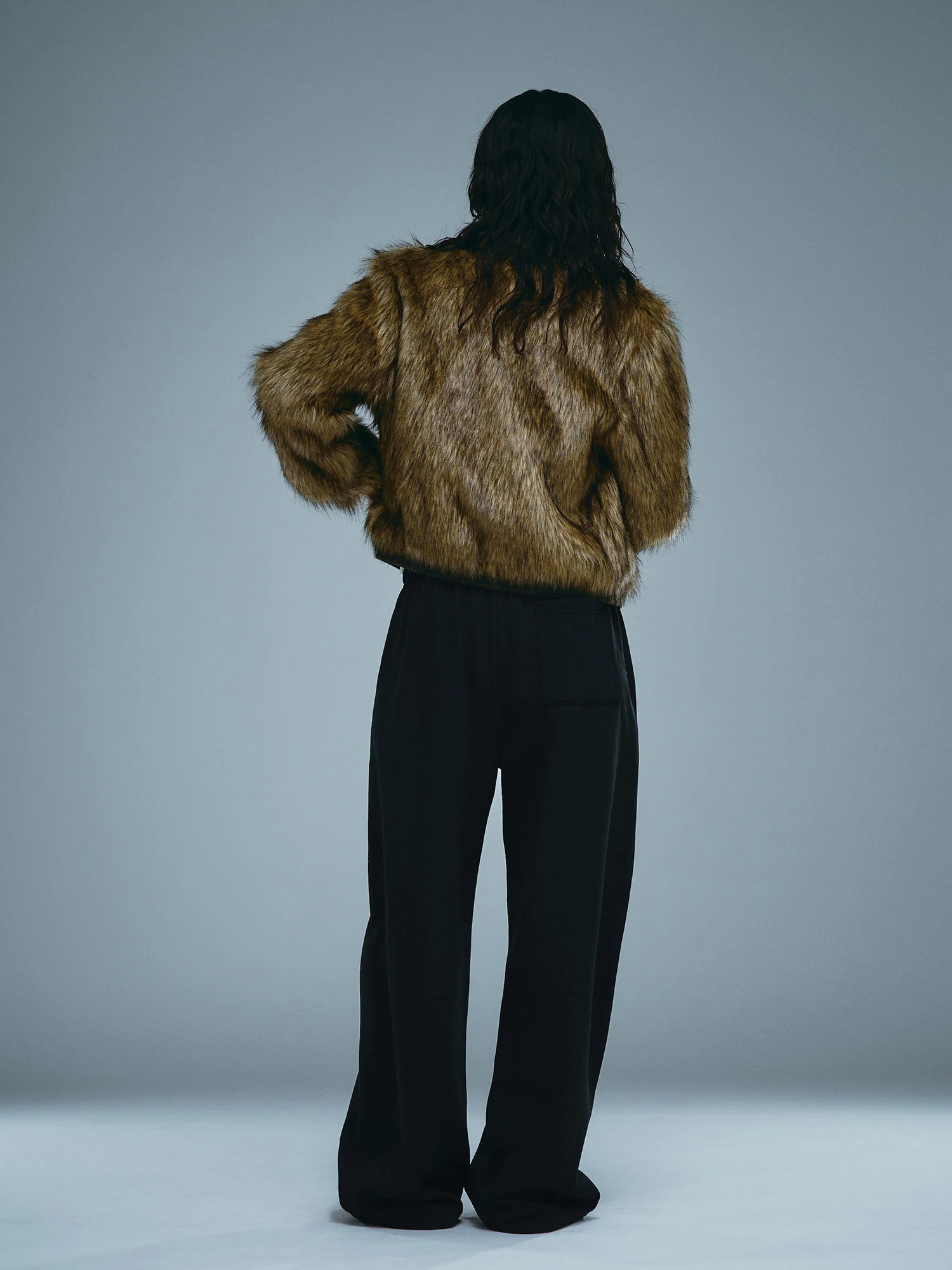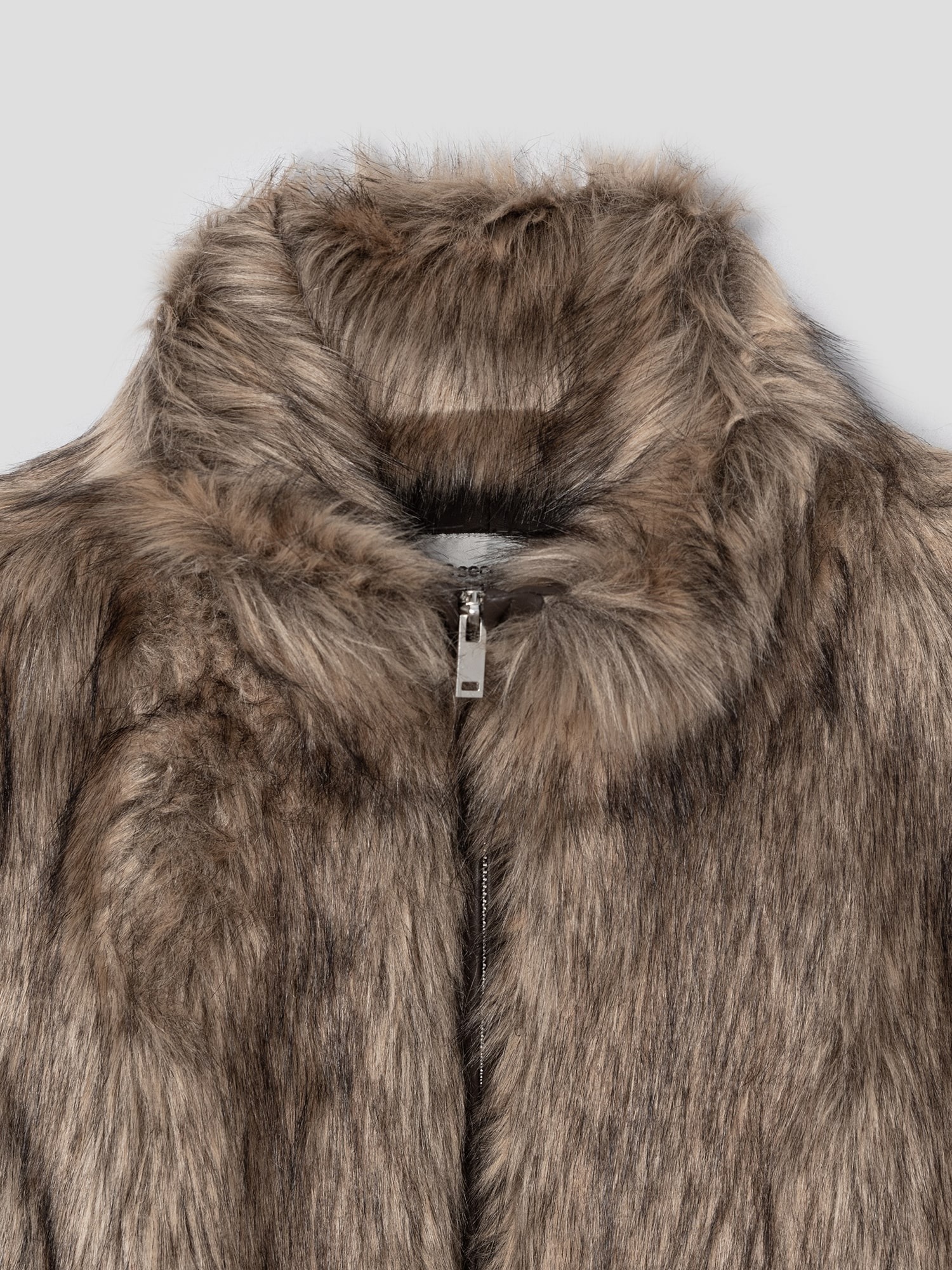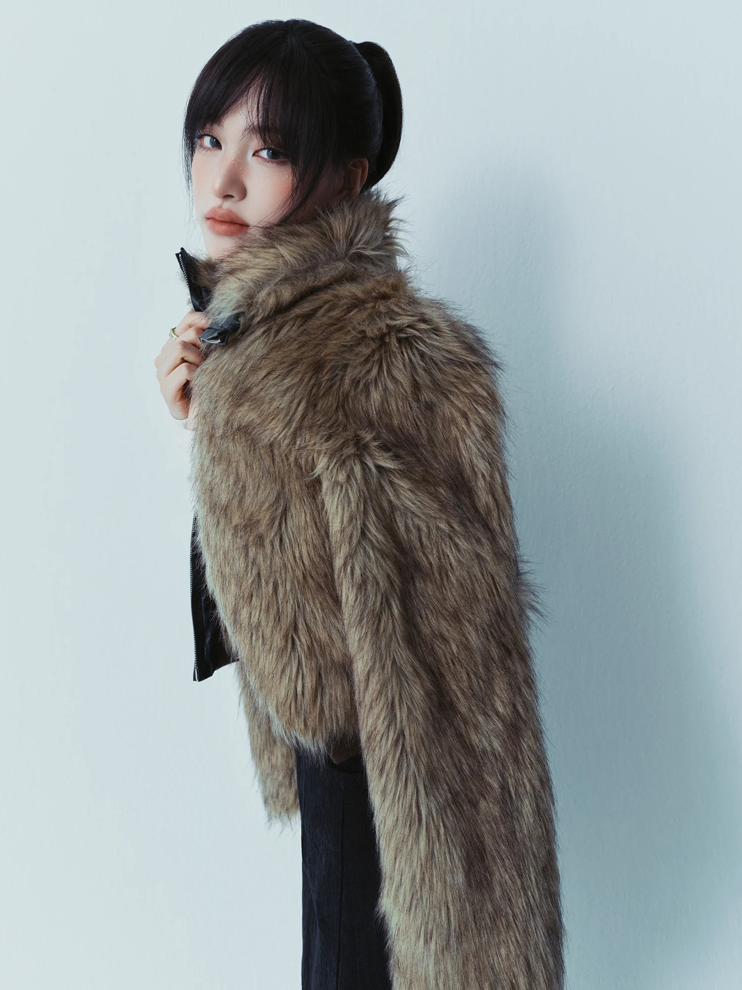 シンプルなデザインに豊かなファーのボリュームが加わり、上品で洗練されたムードを演出します。