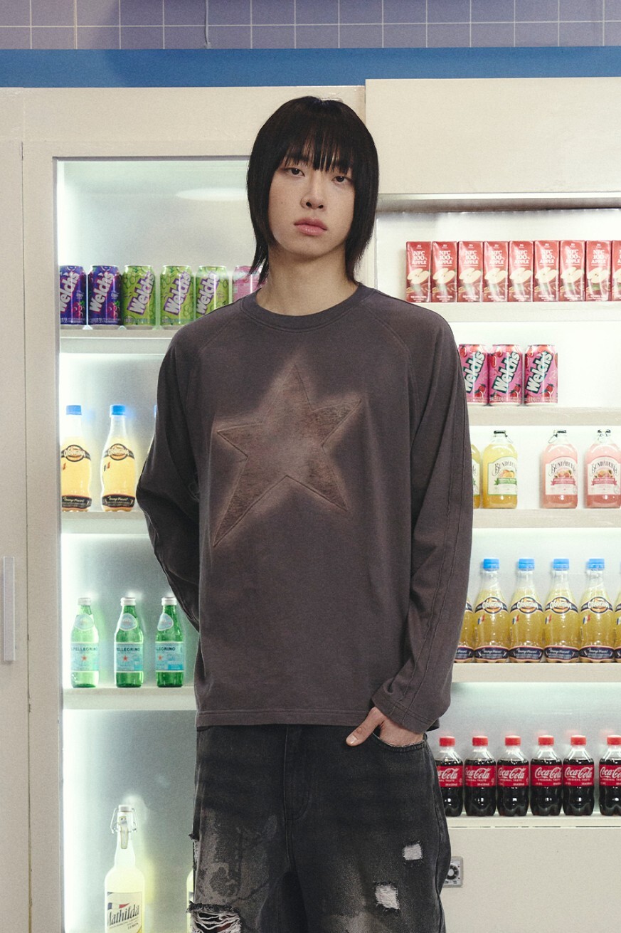 ★NCT WISH リク 着用!!【TRAVEL】Embo Star Long Sleeve Charcoal