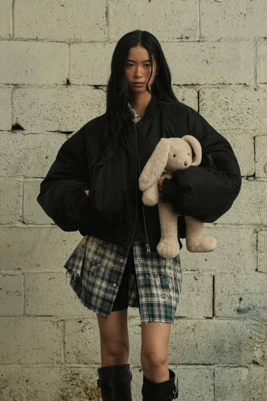 ・クロップド丈のオーバーサイズボンバー