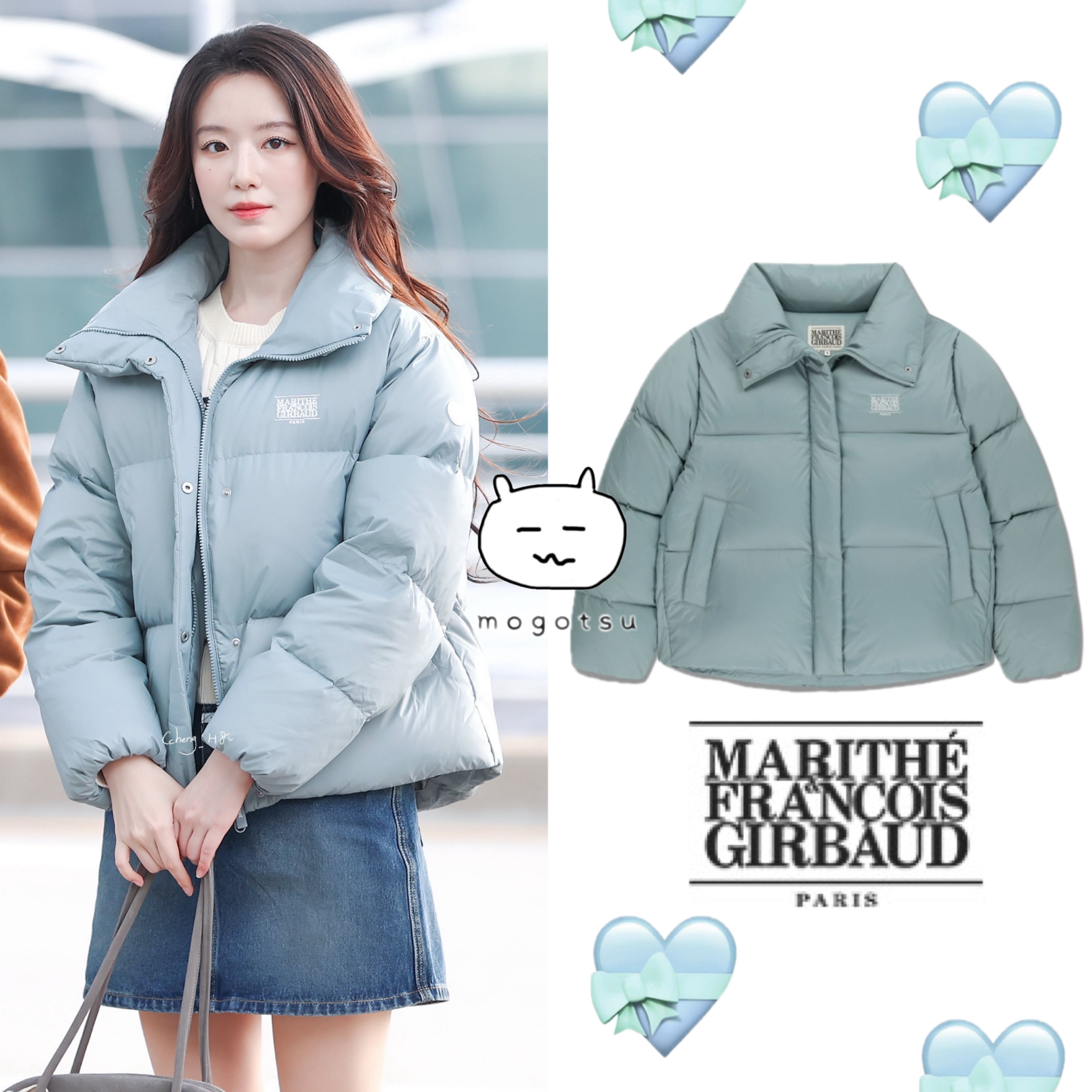 ★i-dle シュファ 着用!!【MARITHÉ FRANҪOIS GIRBAUD】W WIDE COLLAR DOWN JACKET ash blue
