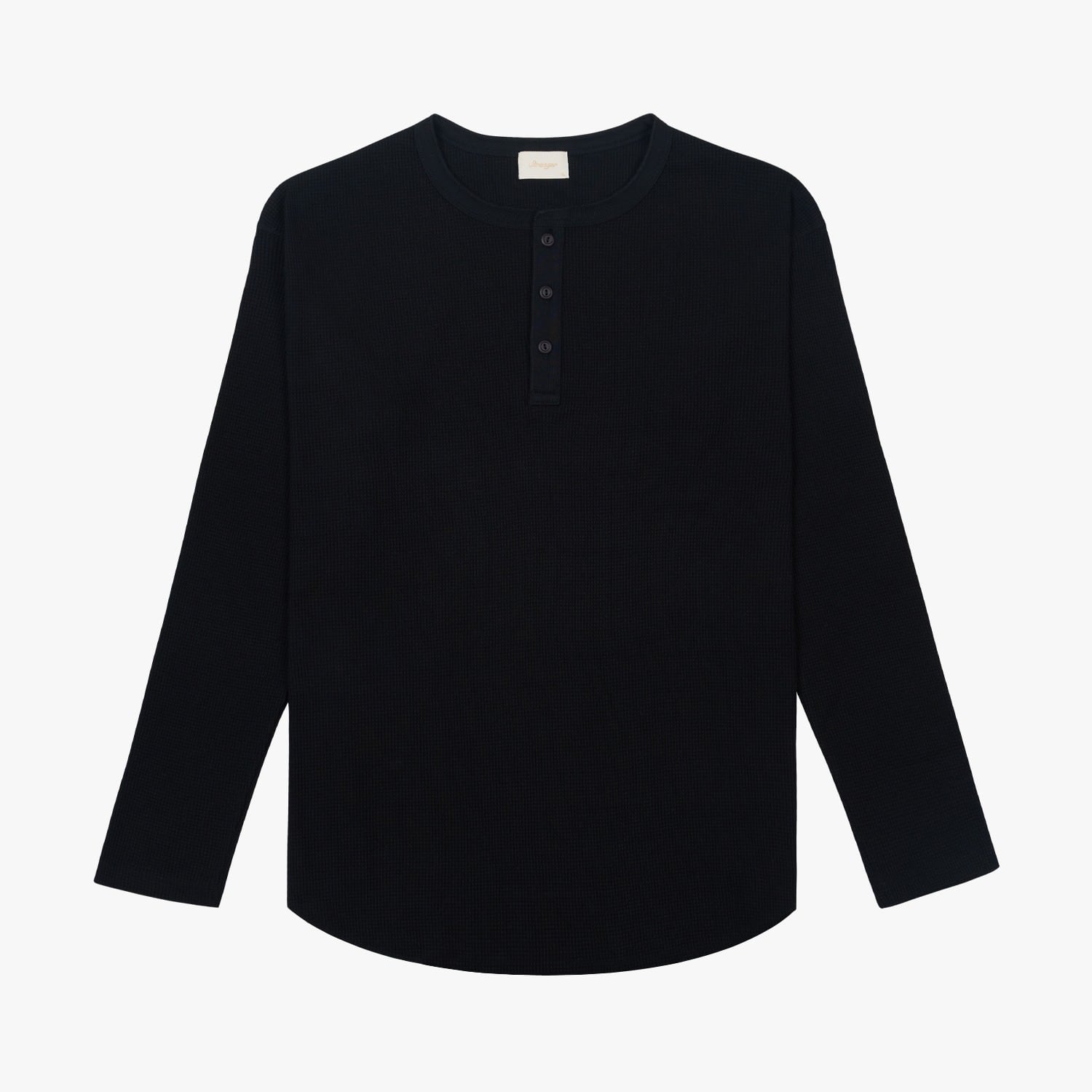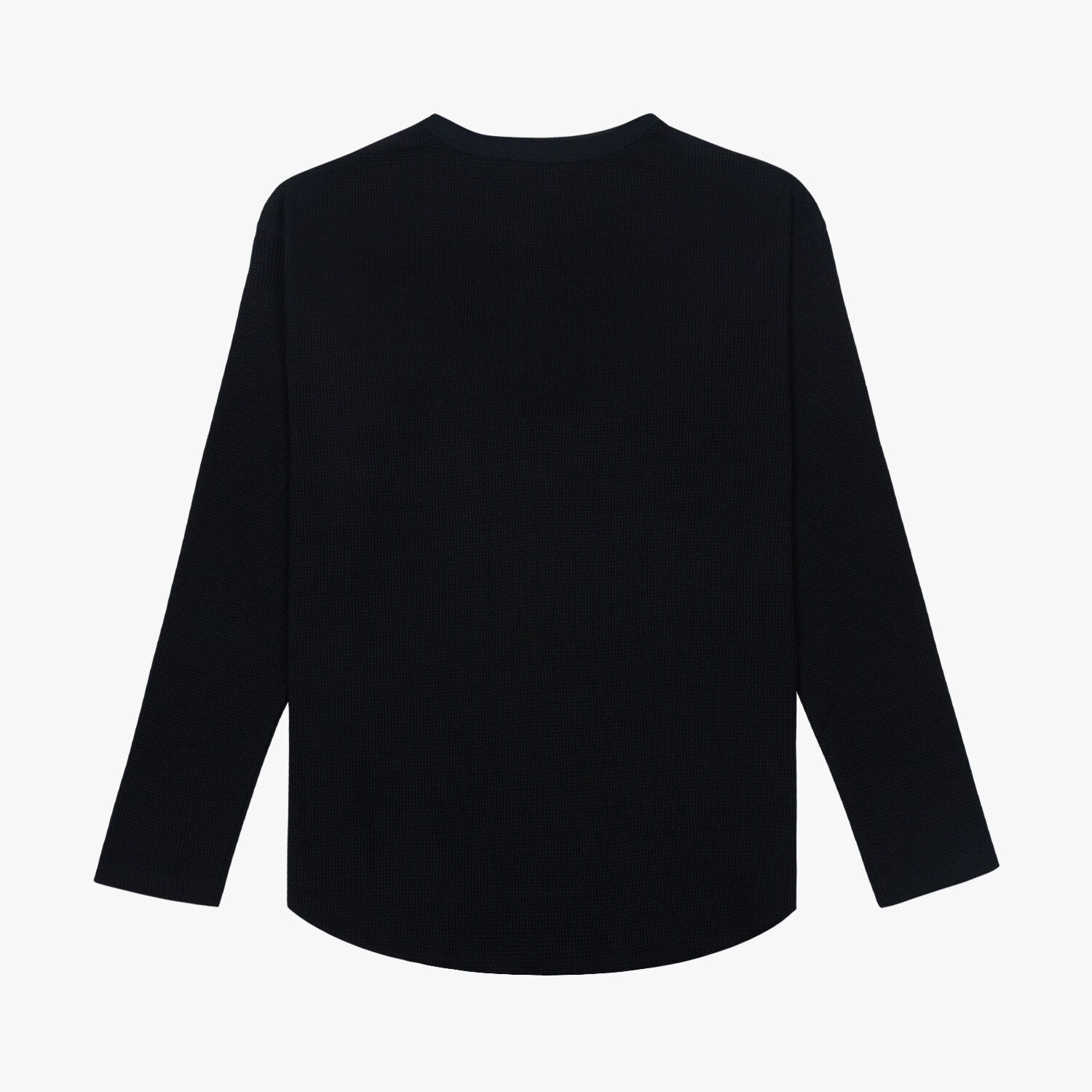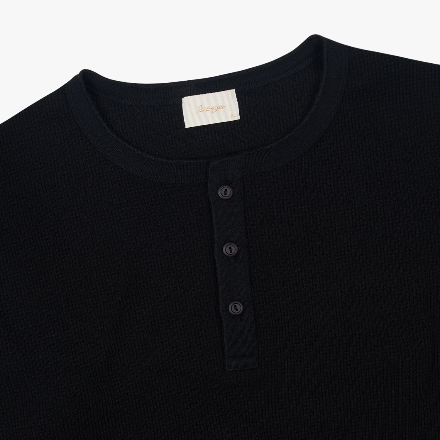 ★NCT DREAM ジェミン 着用!!【STRANGER】Stranger Relaxed Fit Waffle Henley Long-Sleeve (Black)