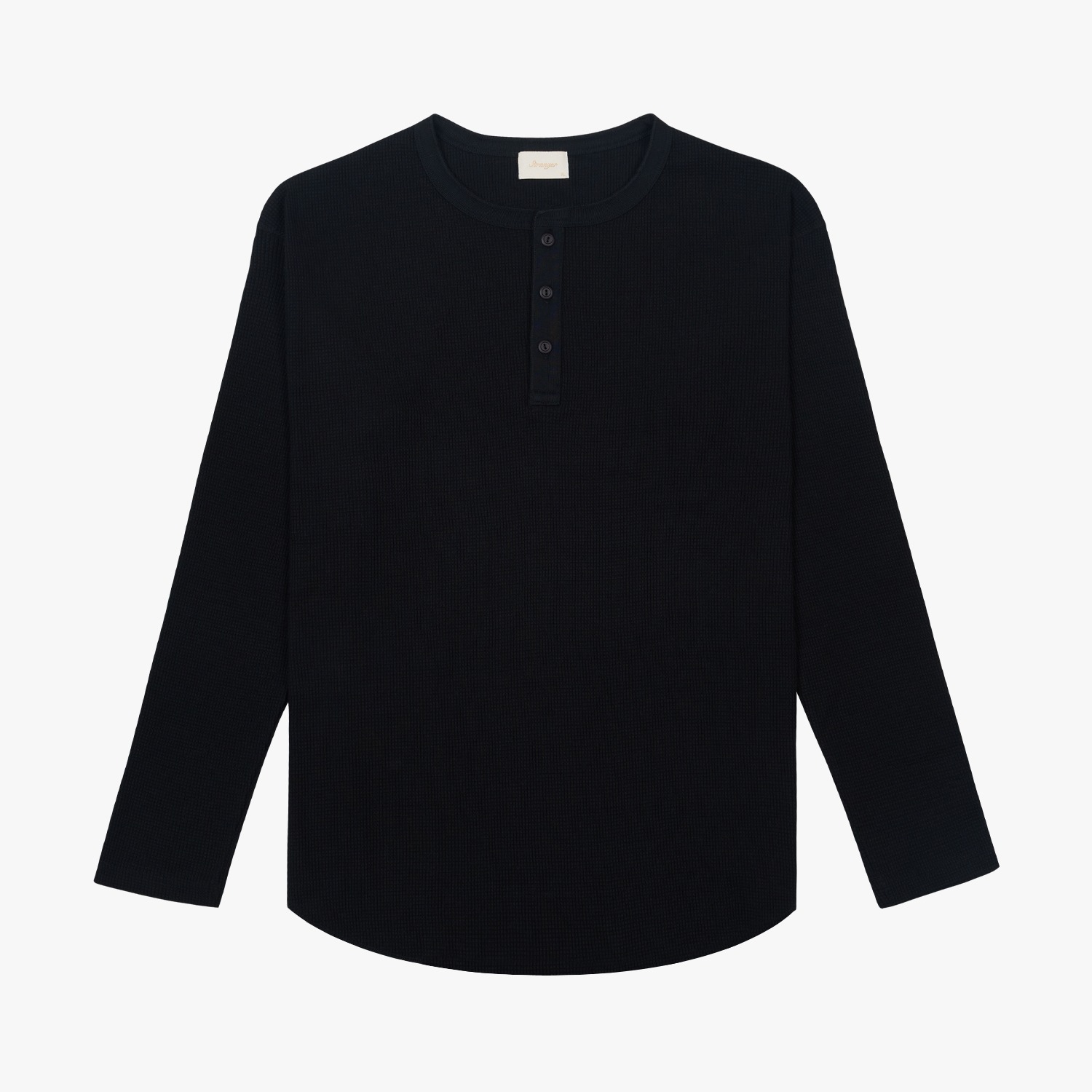 リラックスフィットのワッフルヘンリーネック・ロングスリーブ