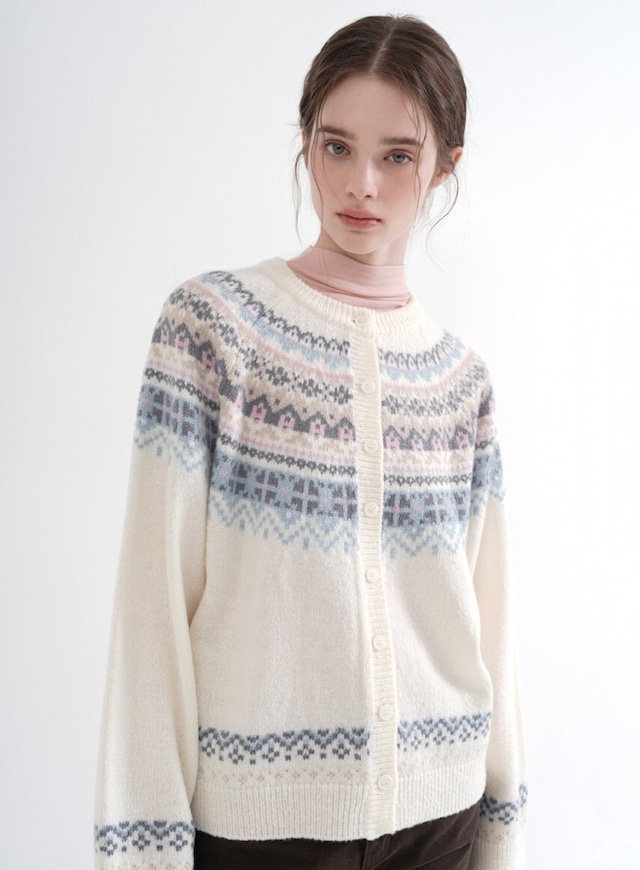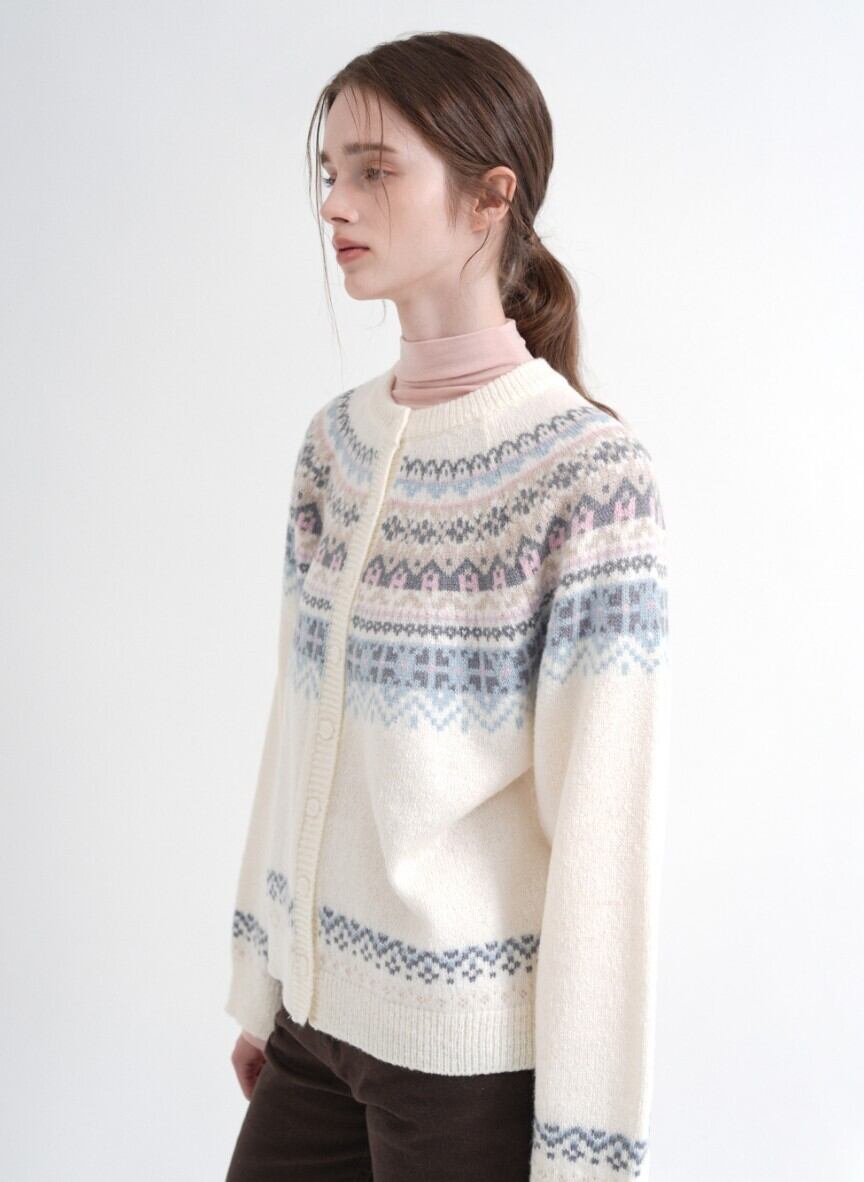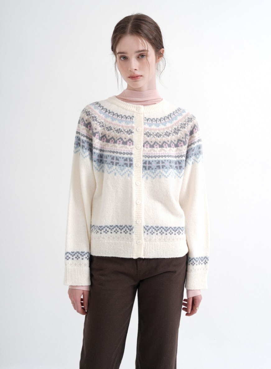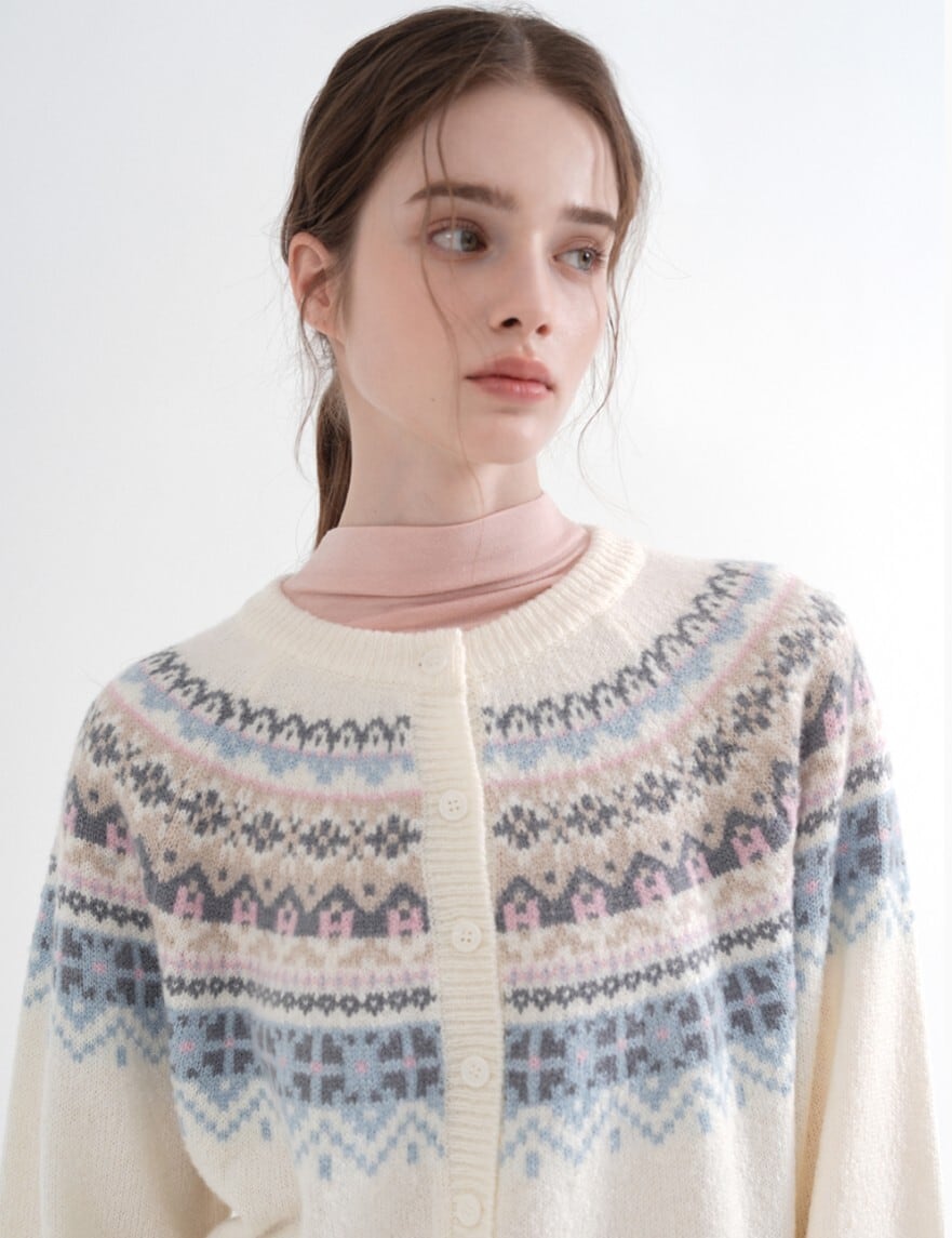 ★fromis_9 ハヨン 着用!!【VLETI】Nordic Round neck Knit Cardigan (cream)