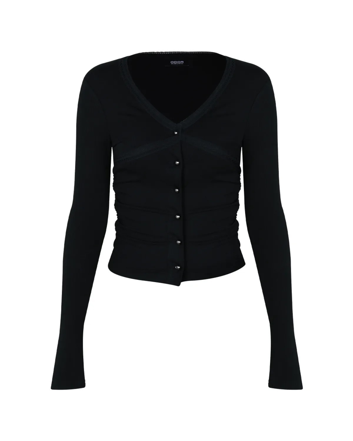 * 胸切開線+前面ボタンデザインでクラシックなシルエットを演出