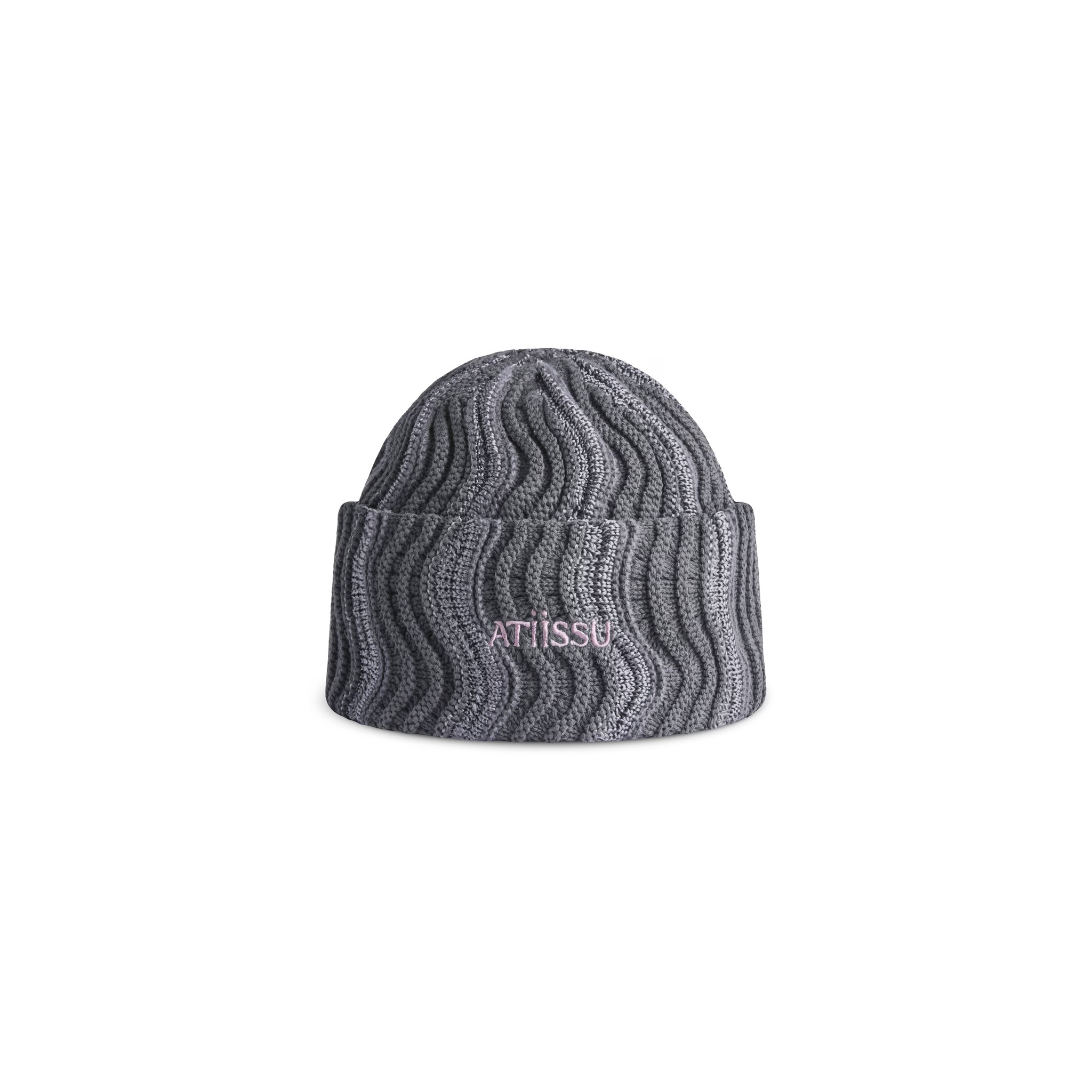 グレーの色味に立体感のあるウェーブパターンニット素材を使用したコットン素材のビーニーです。