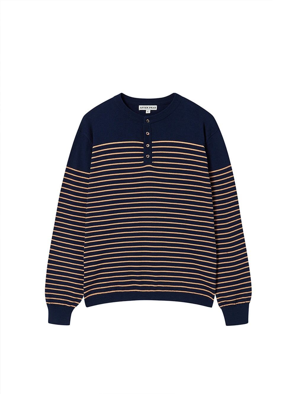 Mサイズ少量在庫確保!★BTS V テテ 着用!!【AFTER PRAY】ストライププラスヘンリーネックニット(ネイビー)