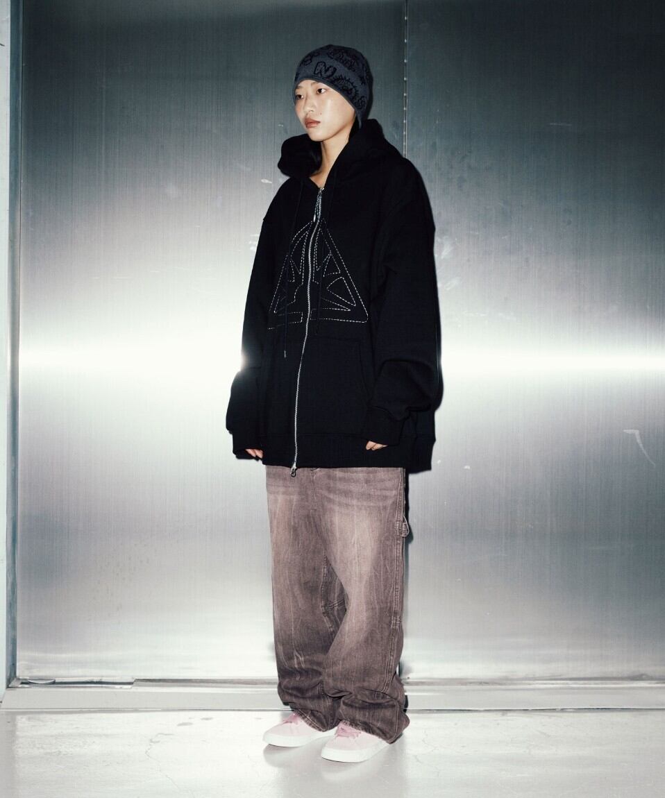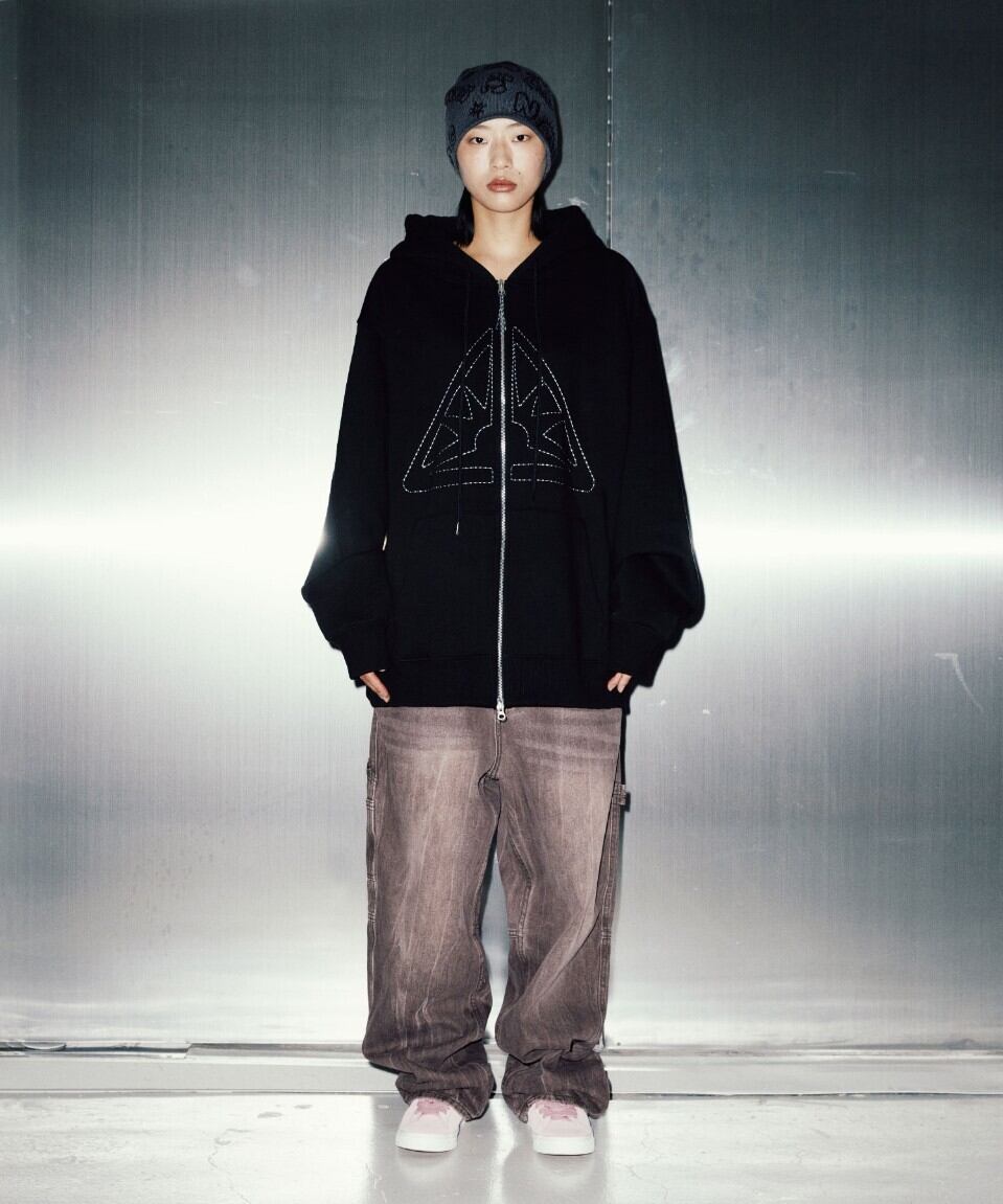 再入庫!!★SEVENTEEN ウォヌ 着用!!【ISTKUNST】サンライズステッチロゴフードジップアップジャケット - 3COLOR