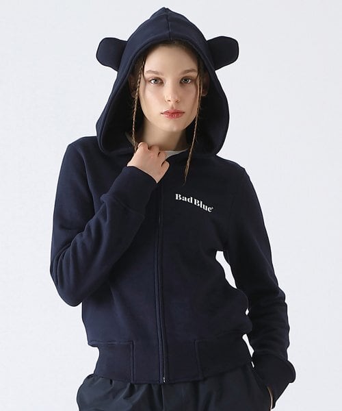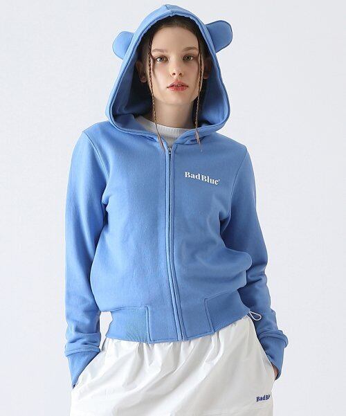 ★New Jeans ハニ 着用!!【Bad Blue】Bear Ear Zipup Crop Hoodie_2color