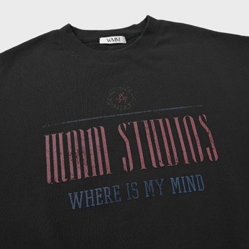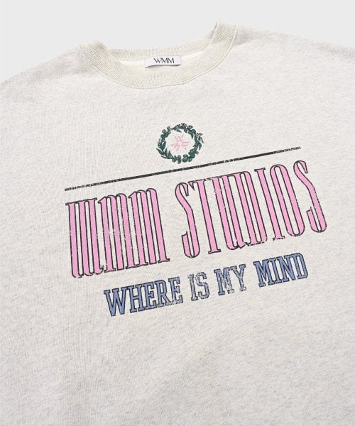 WMMの23SSシーズンユニオンTシャツのスウェットシャツバージョンでビンテージなプリントとオーバーサイズフィットが調和したボーイフレンドフィットマンツーマンTシャツ