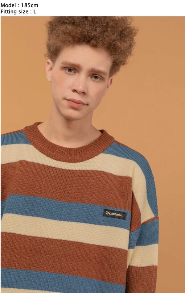 ★TXT ヨンジュン / LE SSERAFIM チェウォン 着用!!【CPGN】ワッペン ロゴ ミックスカラー セーター ブルーキャメル