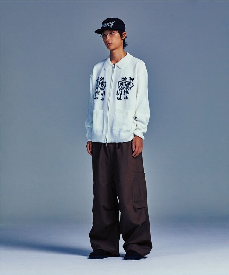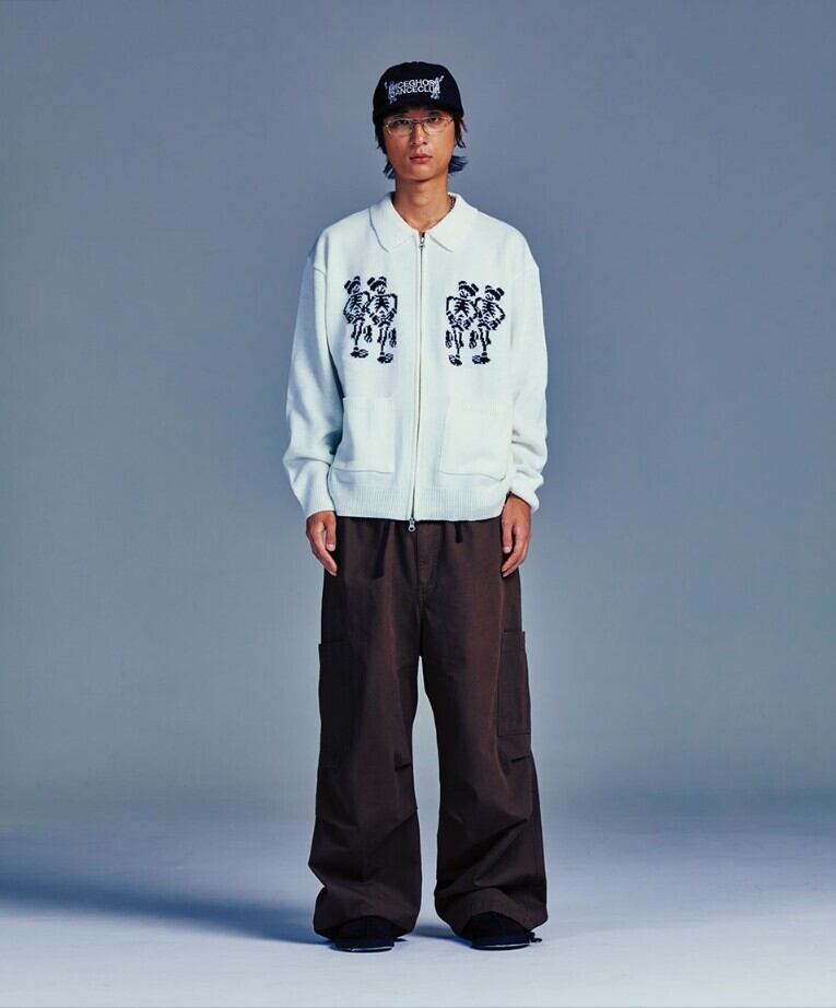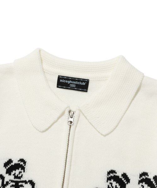 再入庫!!★LE SSERAFIM チェウォン 着用!!【NICE GHOST CLUB】DANCING SKELETONS ZIP POLO KNIT WHITE