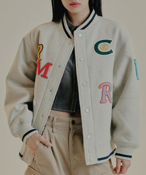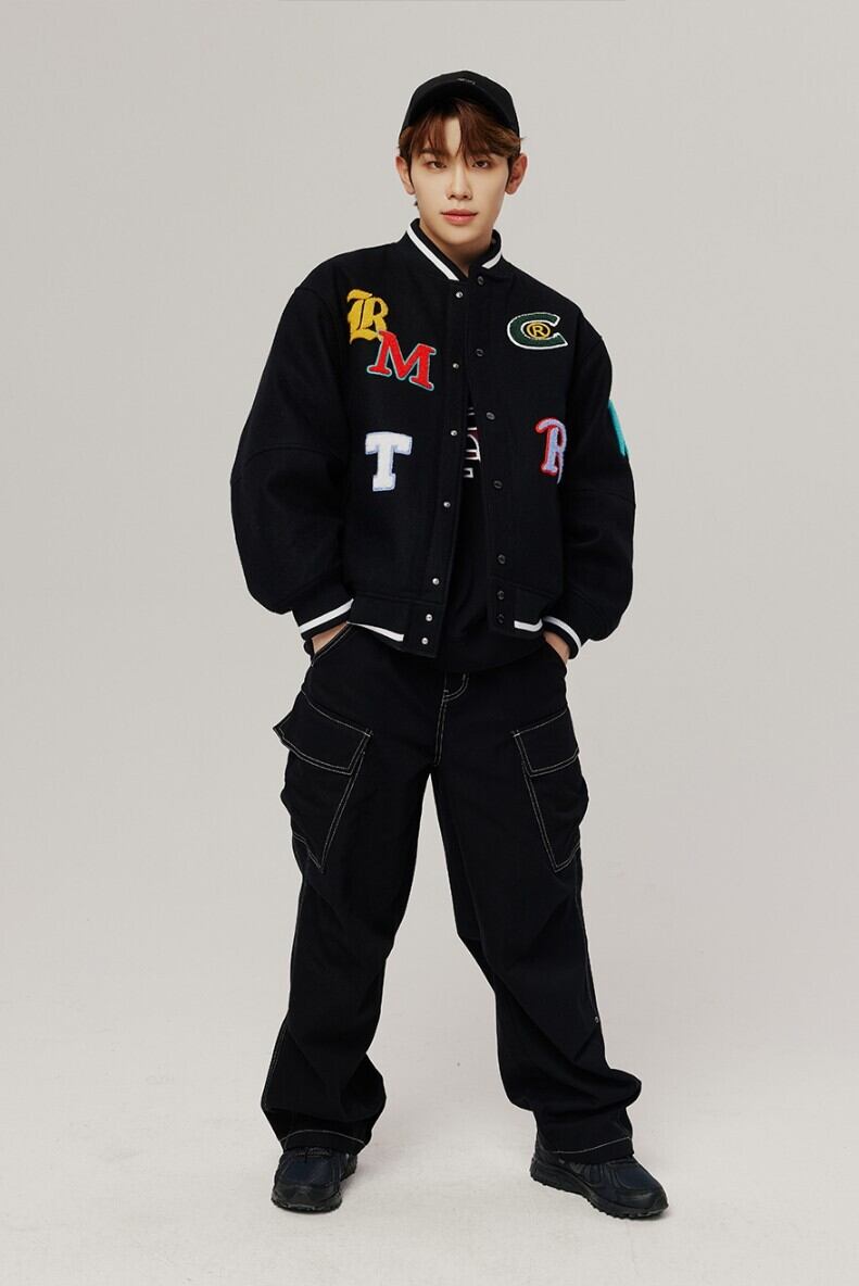 ★NCT DREAM へチャン 着用!!【ROMANTIC CROWN】OUT FONT WOOL VARSITY JACKET - 2COLOR