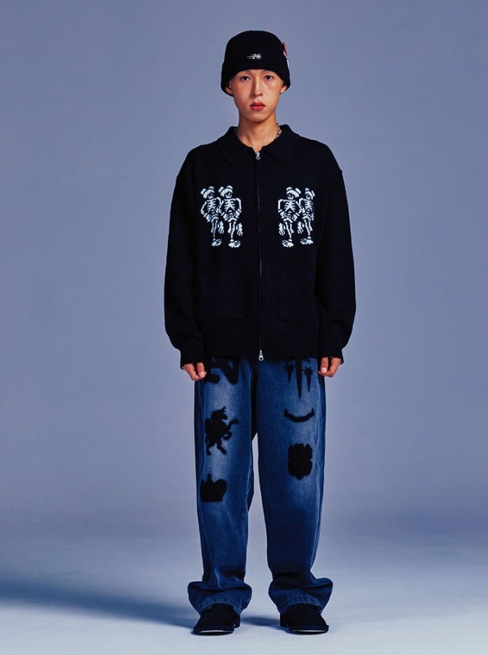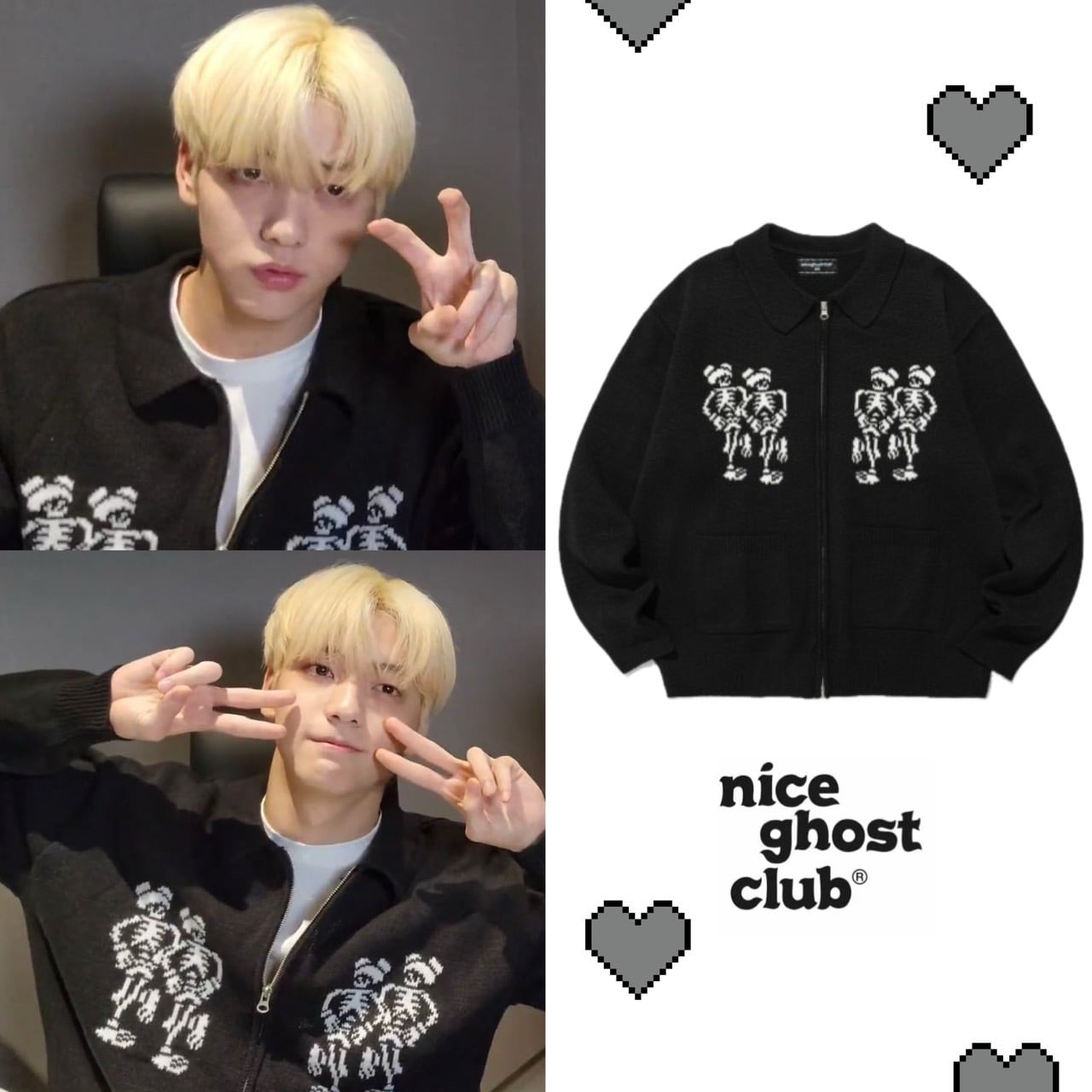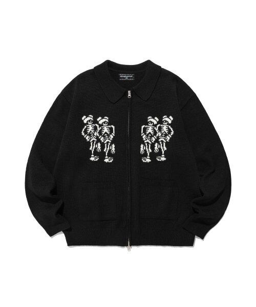 ★TXT スビン / NCT 127 ドヨン 着用!!【NICE GHOST CLUB】DANCING SKELETONS ZIP POLO KNIT BLACK