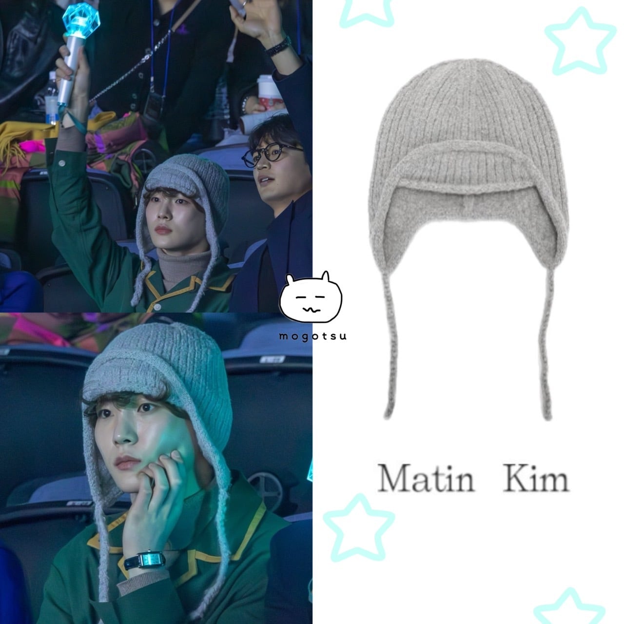★SHINee キー 着用!!【Matin Kim】LABEL POINT CABLE EARFLAP BEANIE IN GREY