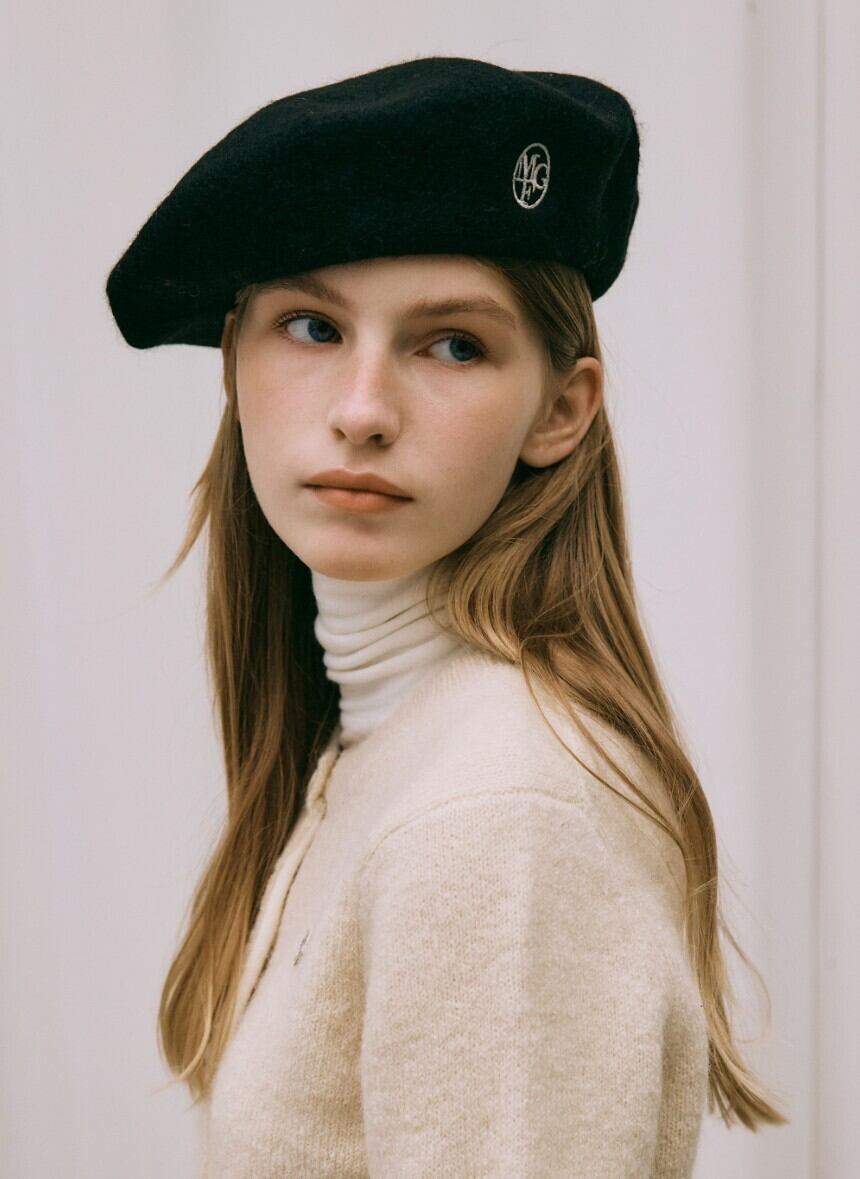 ★MONSTA X I.M 着用!!【MARITHE FRANCOIS GIRBAUD】CIRCLE LOGO EMBROIDERY WOOL BERET black