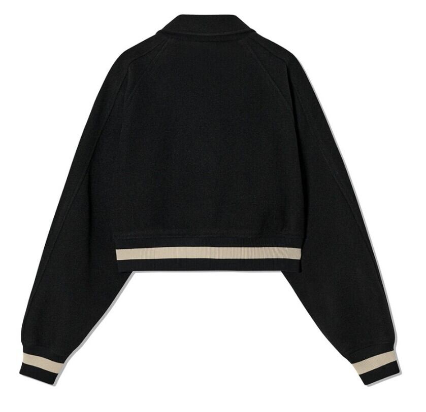★New Jeans ヘリン 着用!!【OIOI】LAYERED LOGO CROP VARSITY JACKET_BLACK