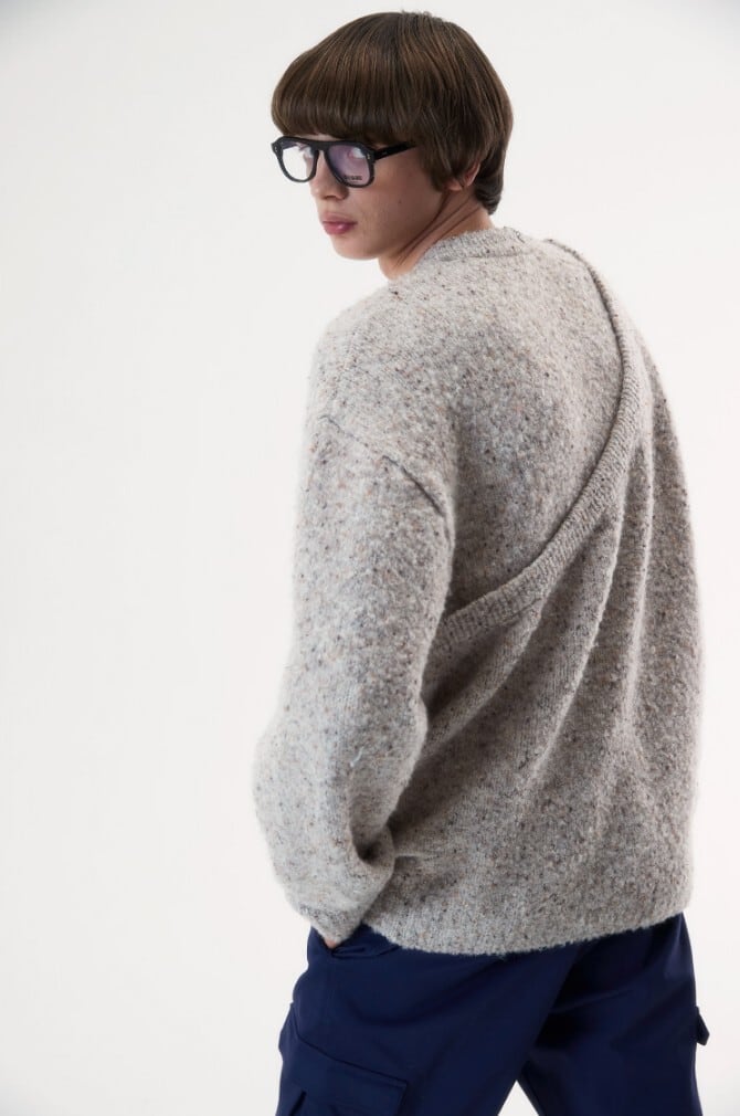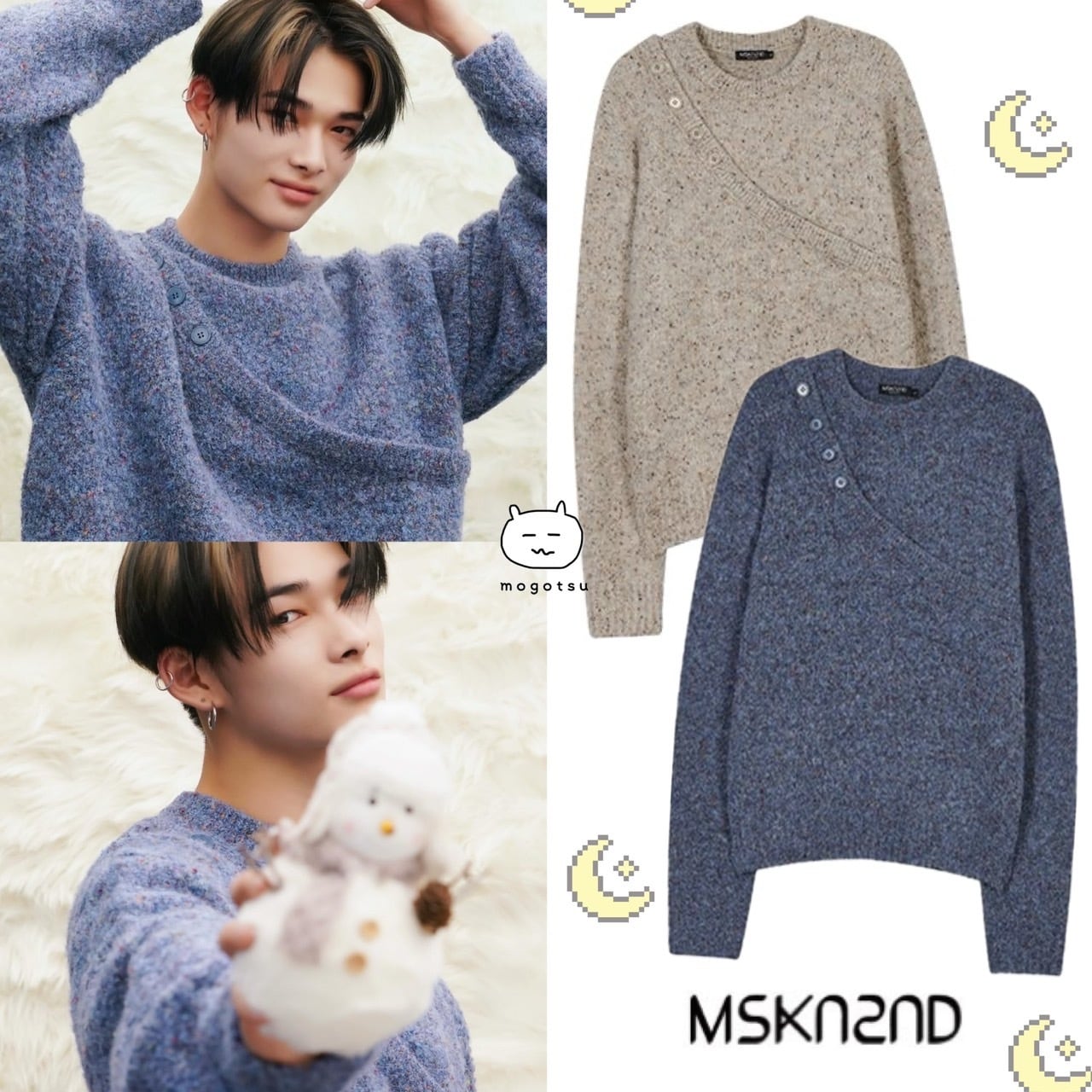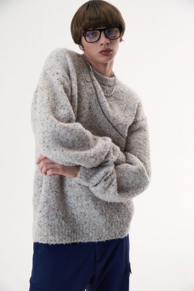 ★ENHYPEN ニキ 着用!!【MSKN2ND】ASYMMETRIC LAYERED NEP SWEATER - 2COLOR