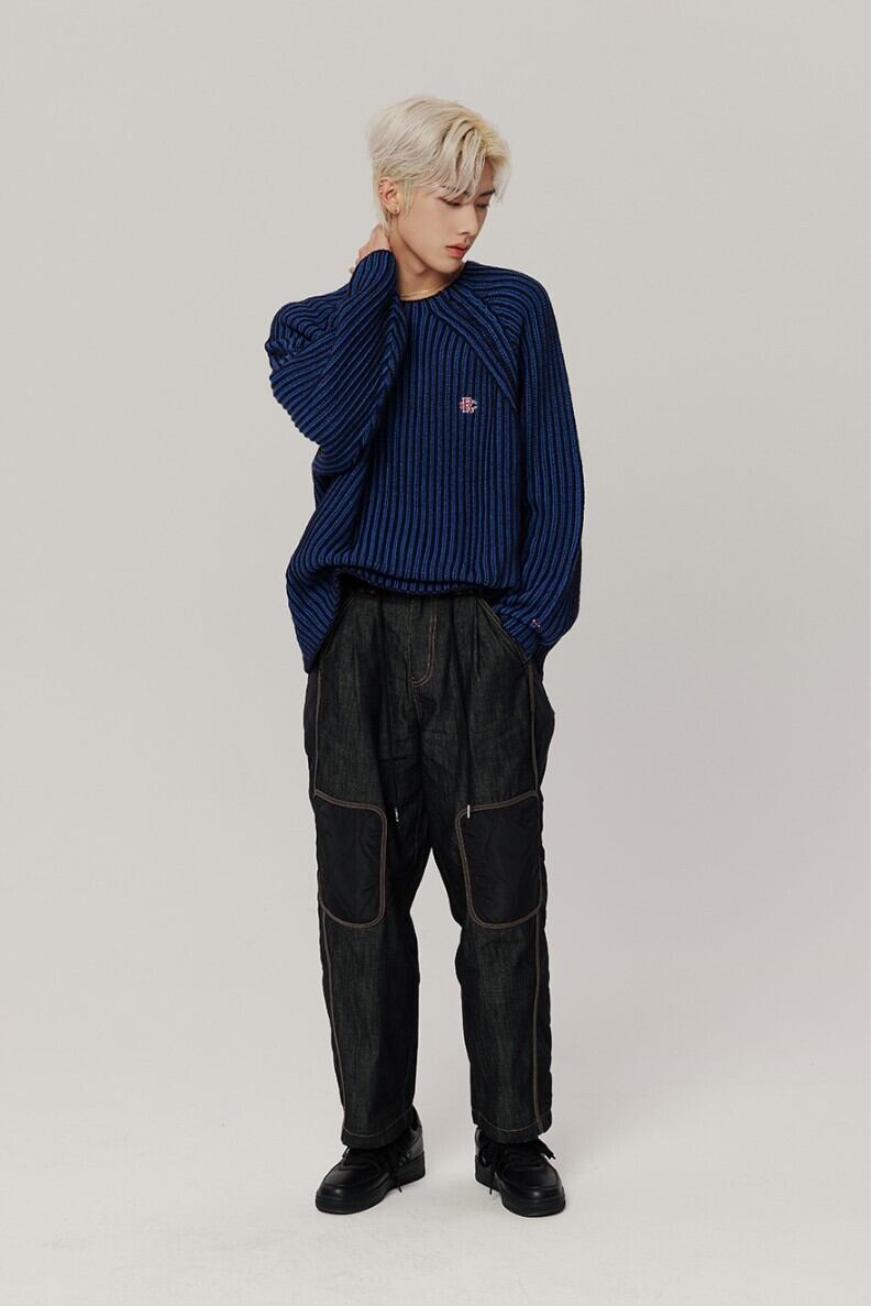 ★CRAVITY ヒョンジュン 着用!!【RMTCRW】ATHLETIC LOGO TWO TONE HEAVY KNIT - 3COLOR